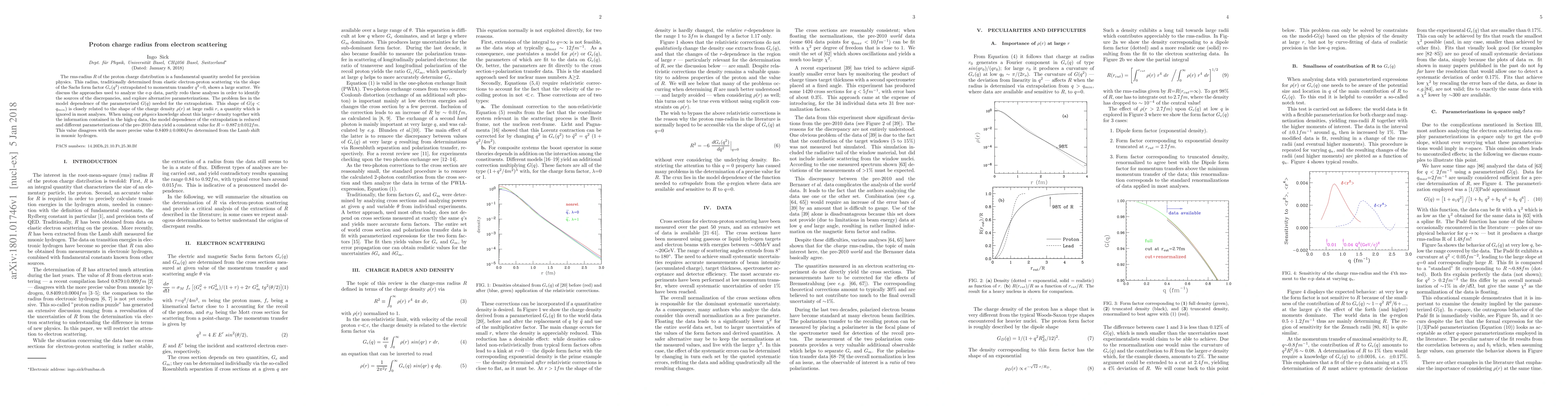 The paper discusses approaches used to extract the proton charge radius from electron scattering data, analyzing various parameterizations and their model dependence. It emphasizes the importance of using parameterizations that correspond to a physical density, especially for large radii.