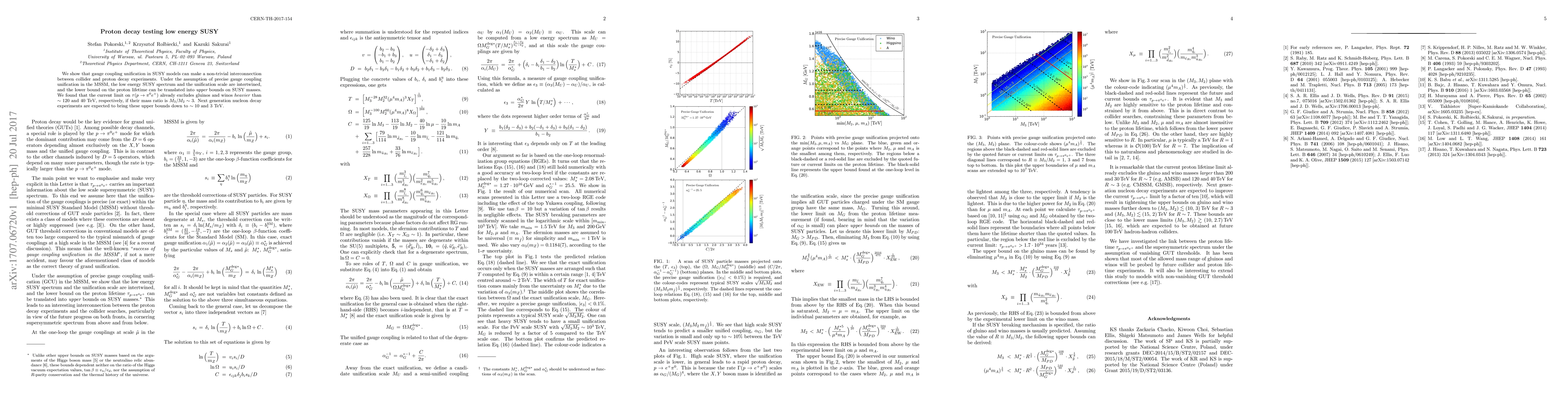 This paper demonstrates how gauge coupling unification in SUSY models links collider and proton decay experiments, showing that current proton decay limits exclude gluinos and winos heavier than 120 and 40 TeV, respectively, under specific mass ratios. Future nucleon decay experiments are anticipated to further reduce these upper bounds to around 10 and 3 TeV.