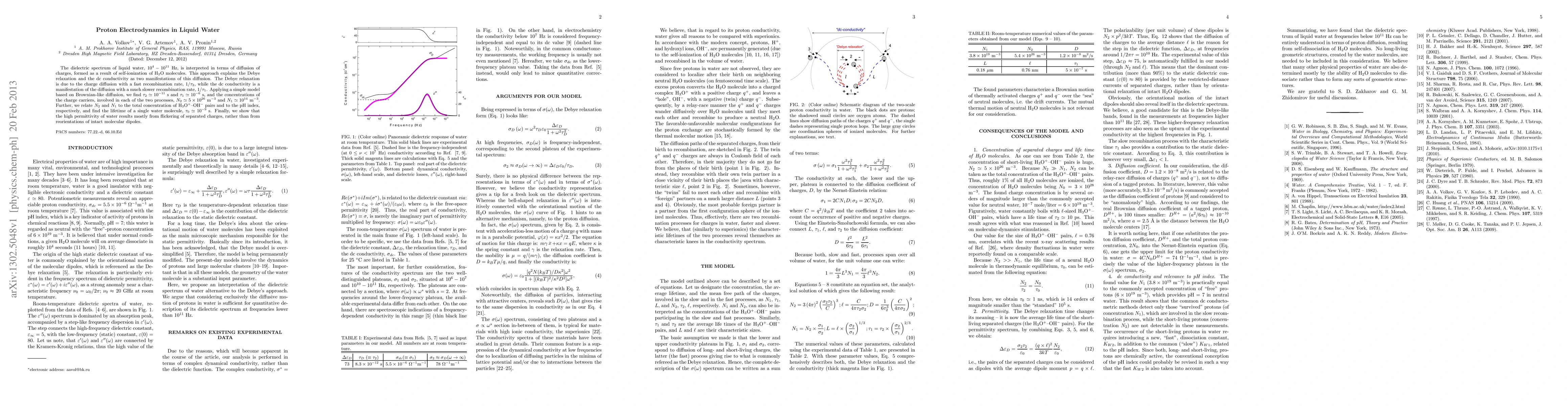 Researchers propose a model for proton electrodynamics in liquid water, explaining dielectric spectrum and conductivity through diffusion of charges formed from self-ionization of H2O molecules.
