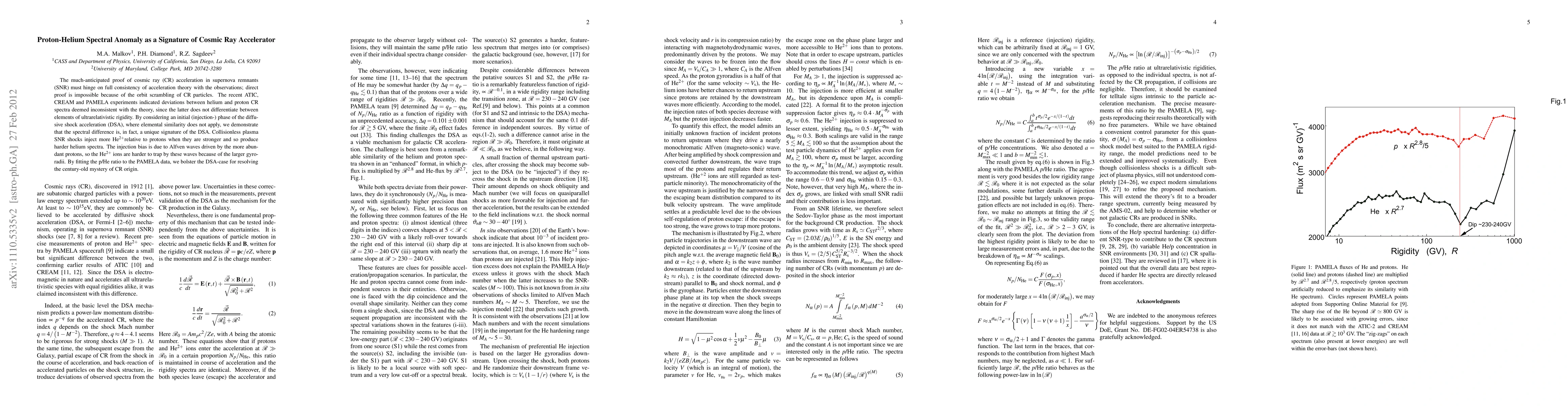 Researchers found a unique signature of cosmic ray accelerator in helium-proton spectral anomaly, suggesting diffusive shock acceleration theory as the explanation for CR origin.