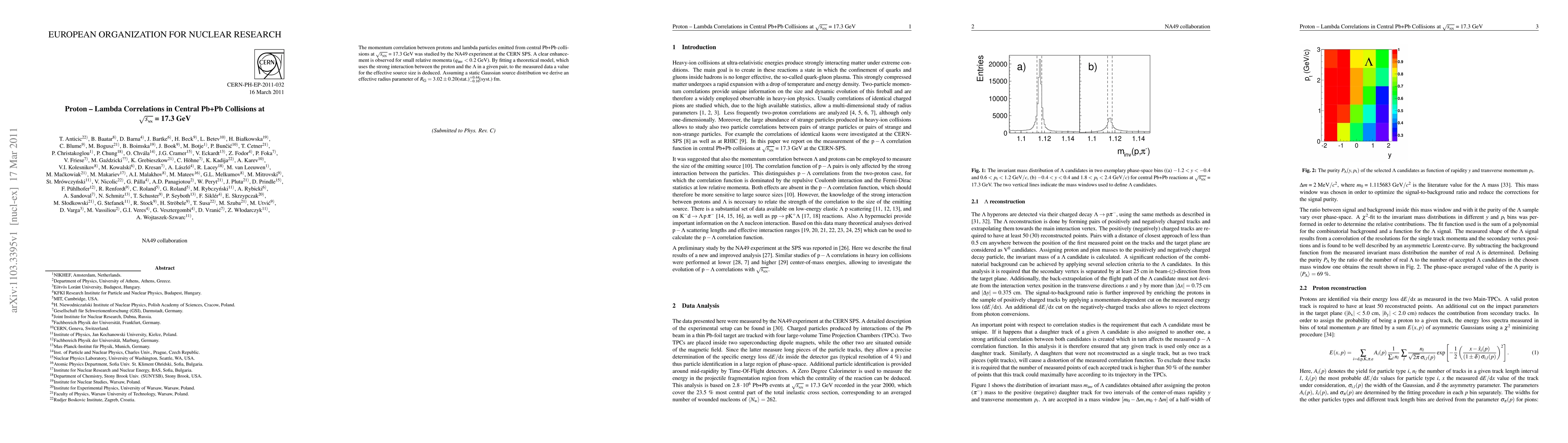 The NA49 experiment observed enhanced proton-lambda correlations in central Pb+Pb collisions at 17.3 GeV, indicating a strong interaction. The effective source size was deduced from the data, yielding an effective radius parameter R_G = 3.02 ± 0.20(stat.)^{+0.44}_{-0.16}(syst.) fm.