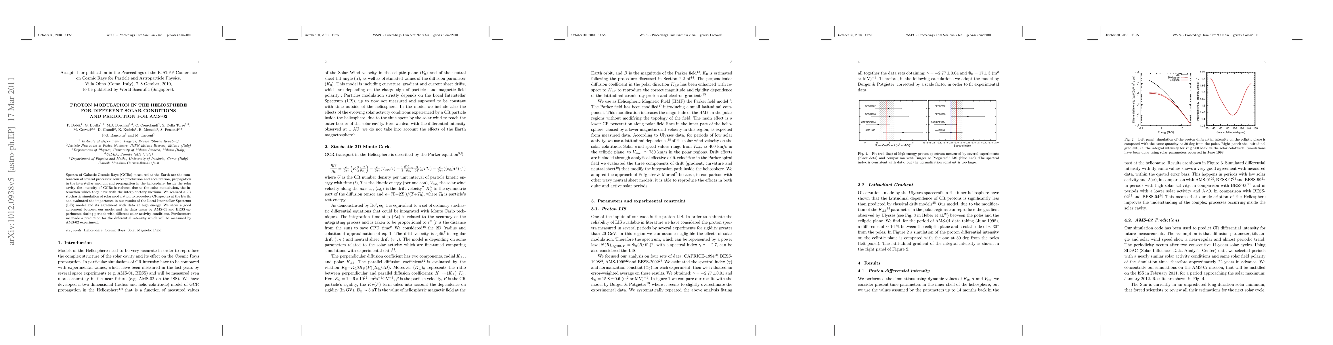 Spectra of Galactic Cosmic Rays (GCRs) measured at the Earth are the combination of several processes: sources production and acceleration, propagation in the interstellar medium and propagation in the heliosphere. Inside the solar cavity the flux of GCRs is reduced due to the solar modulation, the interaction which they have with the interplanetary medium. We realized a 2D stochastic simulation of solar modulation to reproduce CR spectra at the Earth, and evaluated the importance in our results of the Local Interstellar Spectrum (LIS) model and its agreement with data at high energy. We show a good agreement between our model and the data taken by AMS-01 and BESS experiments during periods with different solar activity conditions. Furthermore we made a prediction for the flux which will be measured by AMS-02 experiment.