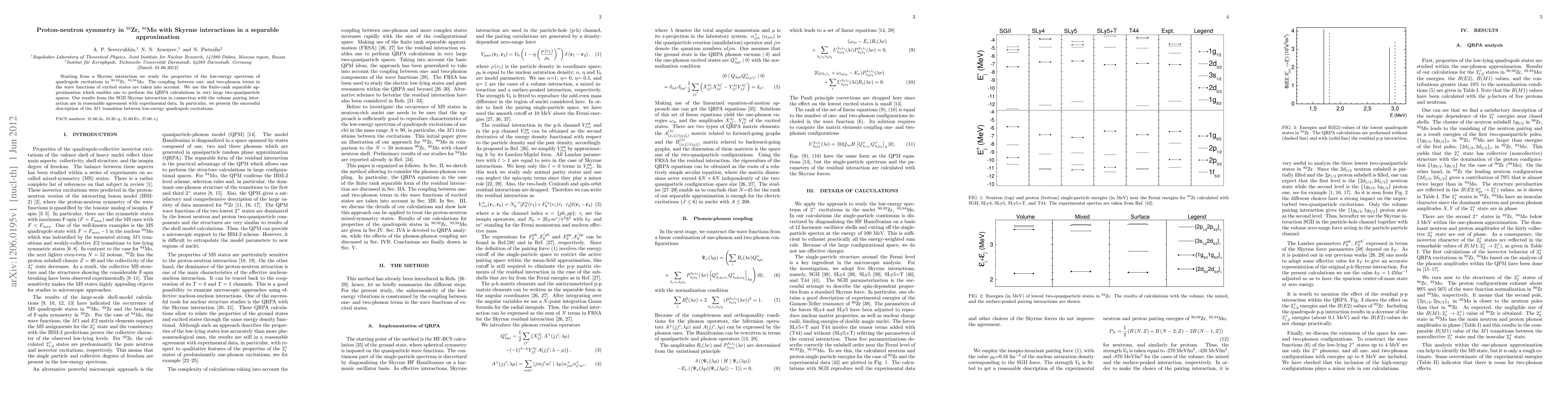 This paper investigates the properties of low-energy quadrupole excitations in 90,92Zr and 92,94Mo using Skyrme interactions within a separable approximation. The study successfully describes the M1 transition between these excitations, showing reasonable agreement with experimental data.