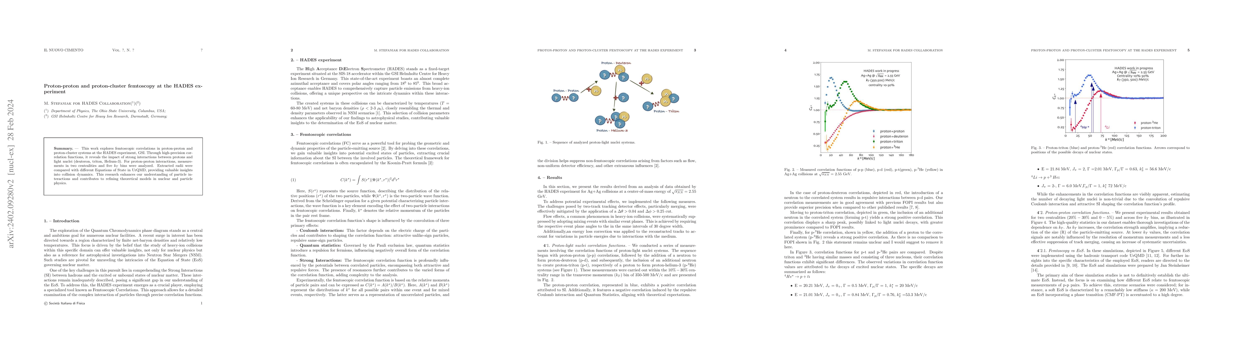 This study investigates femtoscopic correlations in proton-proton and proton-cluster systems using the HADES experiment, revealing strong interaction effects through high-precision correlation functions. The findings provide insights into collision dynamics and help refine theoretical models in nuclear and particle physics.