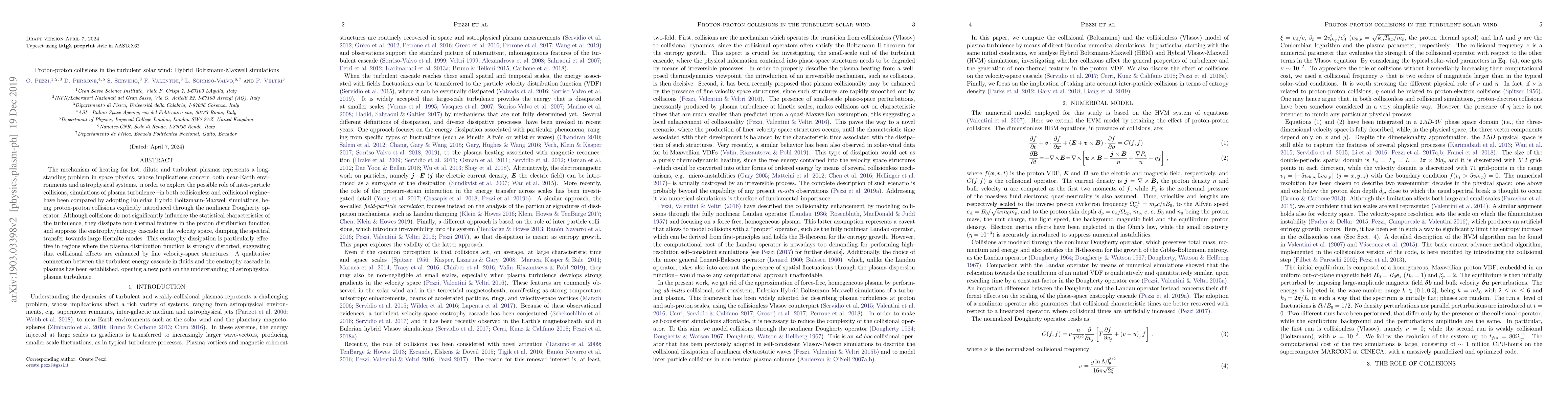 Simulations show that proton-proton collisions in turbulent solar wind suppress nonthermal features and dampen energy transfer in plasma distributions, providing insight into astrophysical plasma turbulence.
