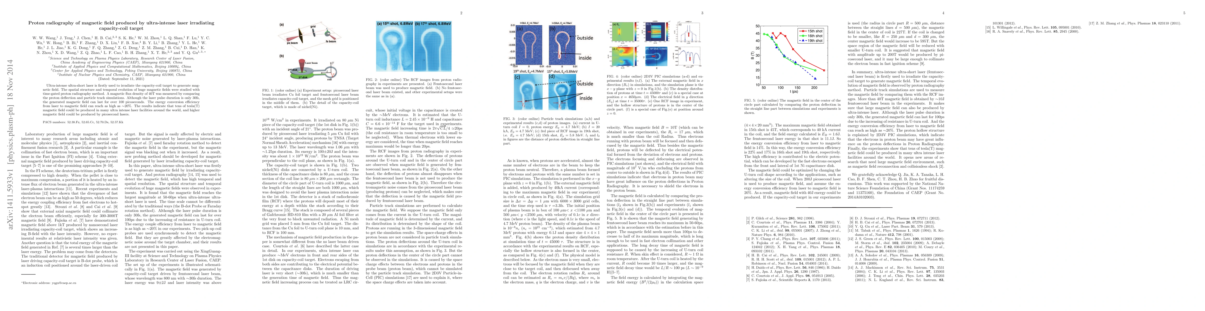 Researchers used ultra-intense lasers to create magnetic fields of up to 40T in a target material, with the field lasting over 100 picoseconds and energy conversion efficiency reaching ~20%. The findings suggest tens of tesla magnetic fields can be produced in many ultra intense laser facilities.