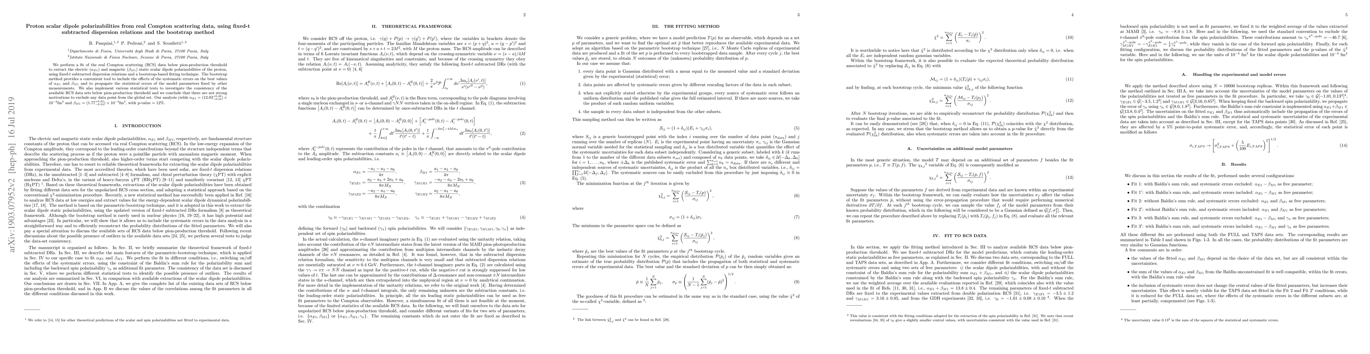 This paper extracts the electric and magnetic scalar dipole polarizabilities of the proton from real Compton scattering data using fixed-t dispersion relations and a bootstrap method. The results are $\alpha_{E1} = (12.03^{+0.48}_{-0.54})\times 10^{-4} \text{fm}^3$ and $\beta_{M1} = (1.77^{+0.52}_{-0.54})\times 10^{-4} \text{fm}^3$, with a p-value of 12%, indicating no strong reasons to exclude any data point.