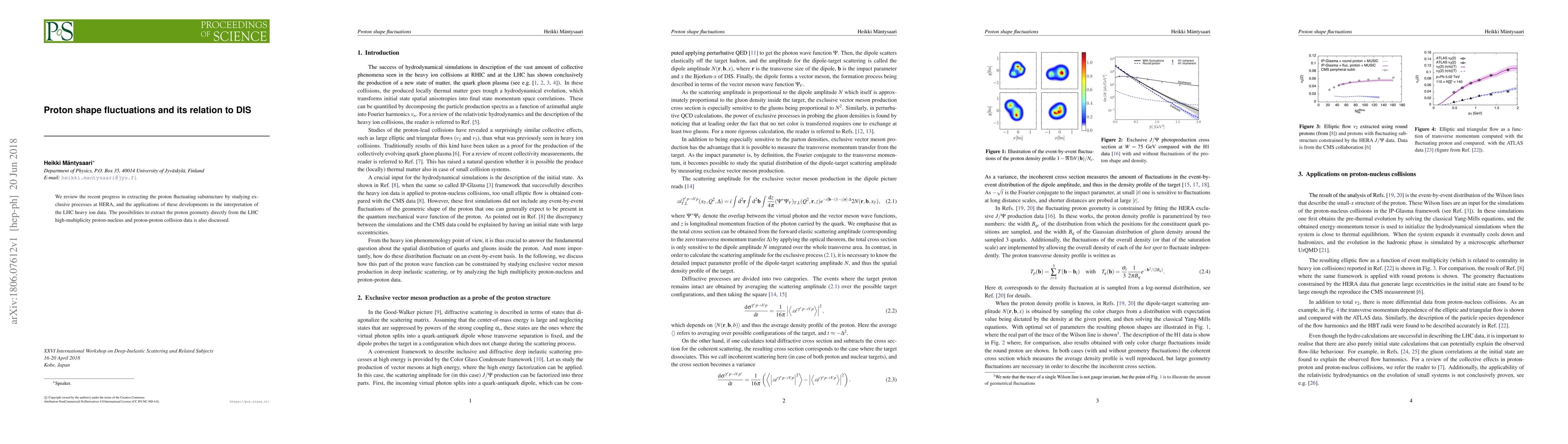 Researchers have made progress in studying proton shape fluctuations using HERA data, which may help interpret LHC heavy ion collisions, and discuss extracting proton geometry from high-multiplicity collision data.