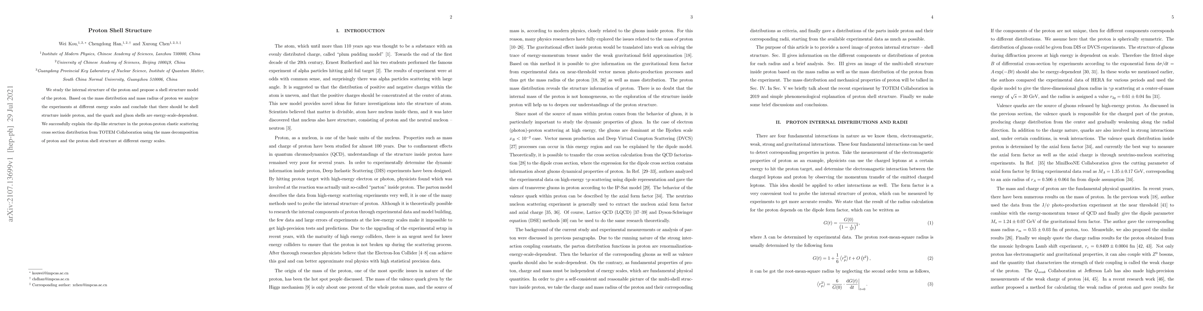 This paper proposes a shell structure model for the proton, suggesting that quark and gluon shells are energy-scale-dependent. The model explains the observed dip-like structure in proton-proton elastic scattering cross sections from TOTEM Collaboration data.