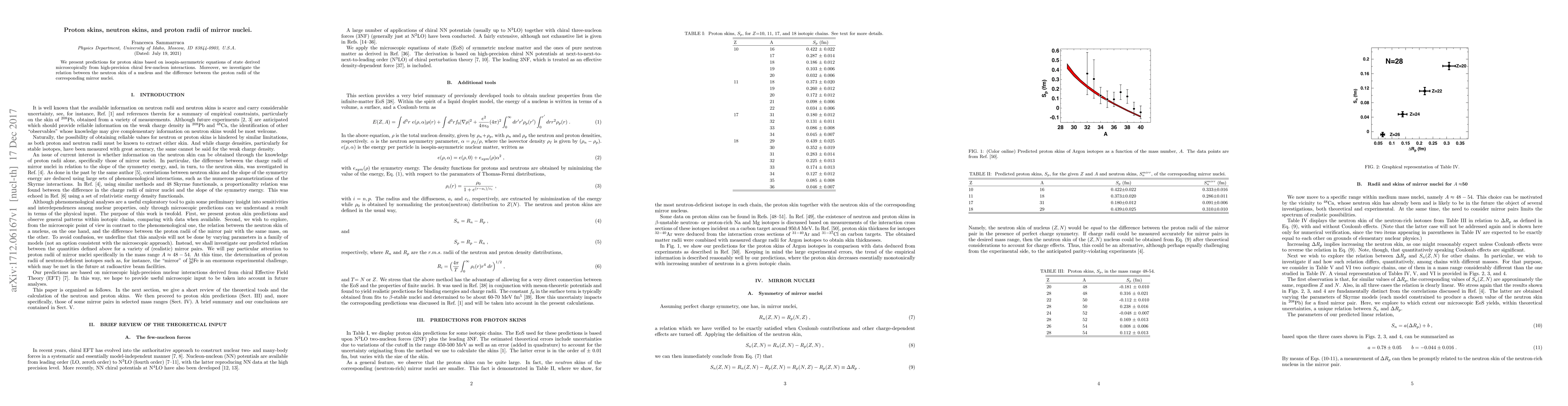 We present predictions for proton skins based on isospin-asymmetric equations of state derived microscopically from high-precision chiral few-nucleon interactions. Moreover, we investigate the relation between the neutron skin of a nucleus and the difference between the proton radii of the corresponding mirror nuclei.