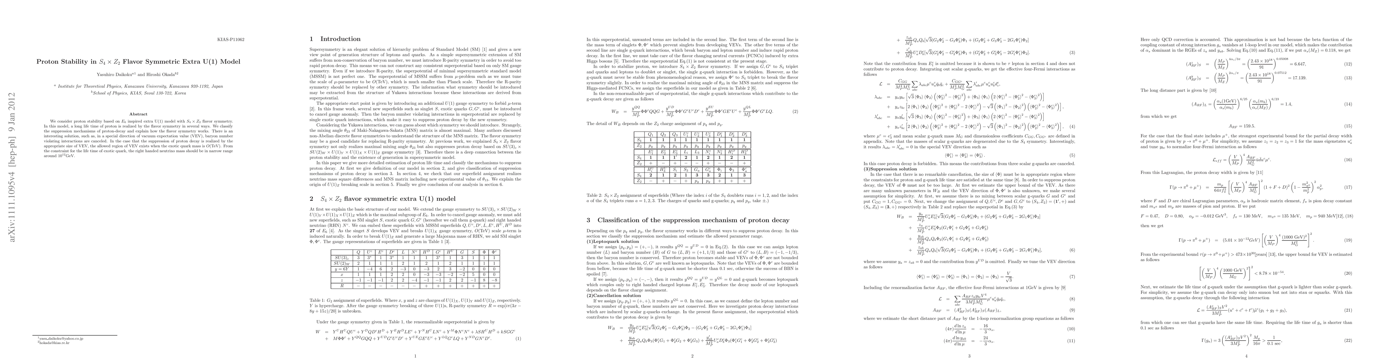 This paper explores proton stability in an E_6 inspired extra U(1) model with S_4 x Z_2 flavor symmetry, demonstrating how flavor symmetry can suppress proton decay. It finds that baryon number violating interactions can be canceled in specific vacuum expectation value directions, allowing for a long proton lifetime when the exotic quark mass is around O(TeV).