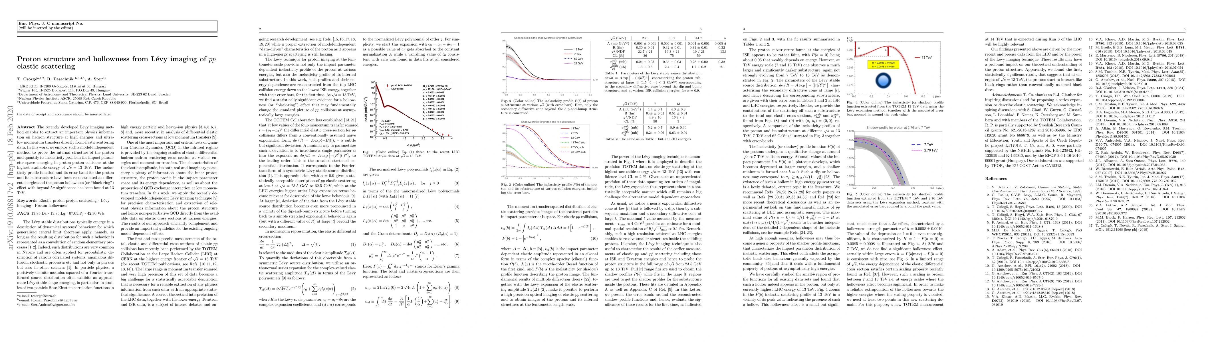 This paper uses the L\'evy imaging method to analyze proton structure in high-energy proton-proton elastic scattering at $\sqrt{s} = 13$ TeV, revealing a significant hollowness effect with over 5$\sigma$ significance, indicating a "black-ring" phenomenon in the proton's inelasticity profile.