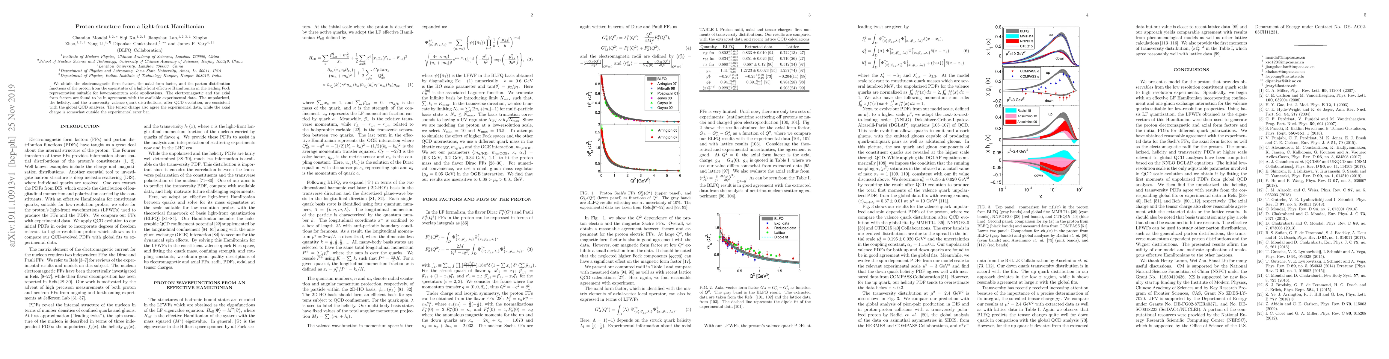 Researchers used a light-front Hamiltonian to study the proton's structure, finding agreement with experimental data on form factors and parton distributions, while some results deviated from error bars.