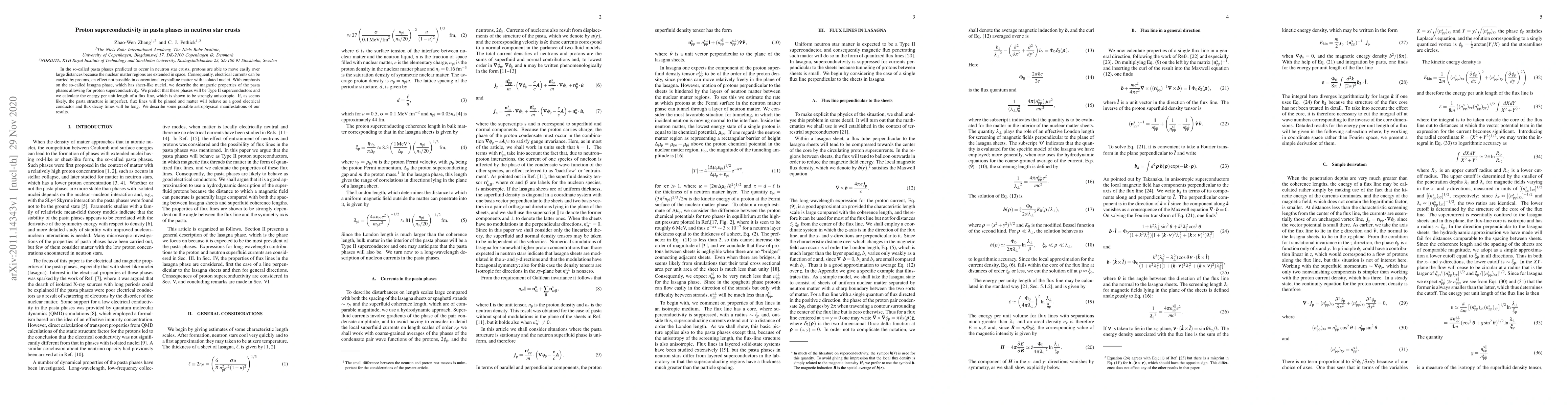 This paper investigates proton superconductivity in neutron star crusts, specifically in "pasta phases" where protons can move freely due to extended nuclear regions. The study predicts that these phases, particularly the lasagna phase, will act as Type II superconductors with anisotropic flux line energy, potentially leading to long flux decay times and good electrical conductivity if imperfections are present.