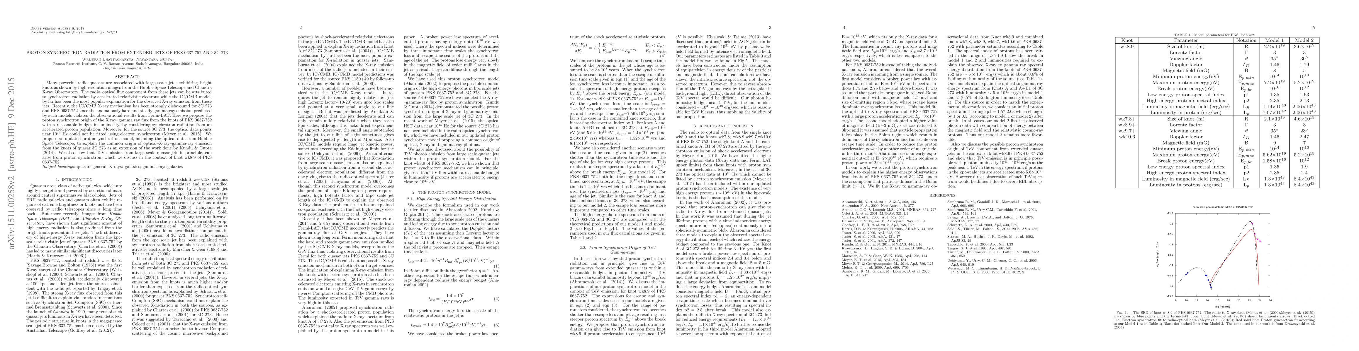 This paper proposes that proton synchrotron radiation, rather than the IC/CMB X-ray mechanism, explains the X-ray and gamma-ray emissions from the jets of PKS 0637-752 and 3C 273, aligning with observational data from Fermi-LAT. It also suggests that the optical data for 3C 273 can be better explained by an updated proton synchrotron model.