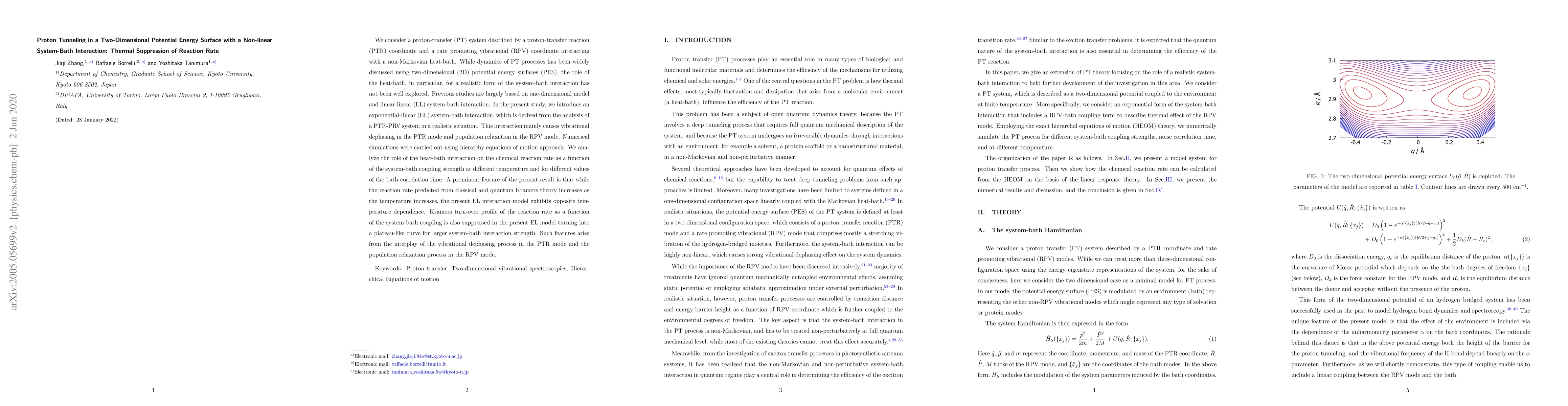 Research explores proton tunneling in a 2D potential energy surface with a non-linear system-bath interaction, finding that the heat-bath affects reaction rates in an unexpected way, suppressing temperature dependence and Kramers turn-over profiles.