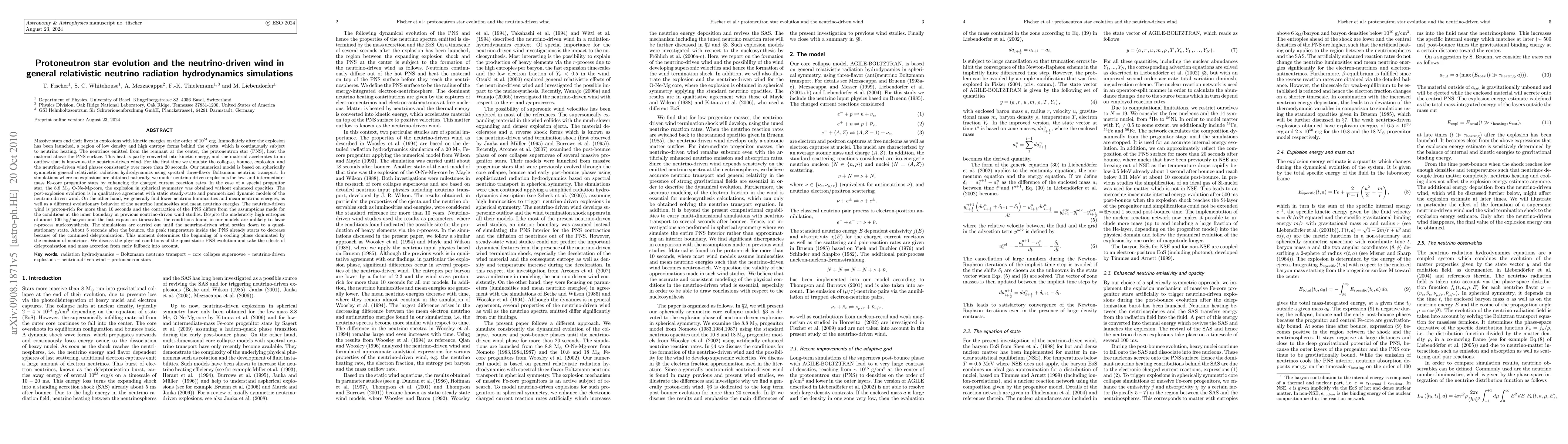 This paper presents the first consistent simulations of massive star collapse, explosion, and the neutrino-driven wind phase using general relativistic radiation hydrodynamics. The study finds that the neutrino-driven wind is proton-rich and exhibits different evolutionary behaviors compared to previous models, with implications for the protoneutron star contraction and neutrino luminosity characteristics.