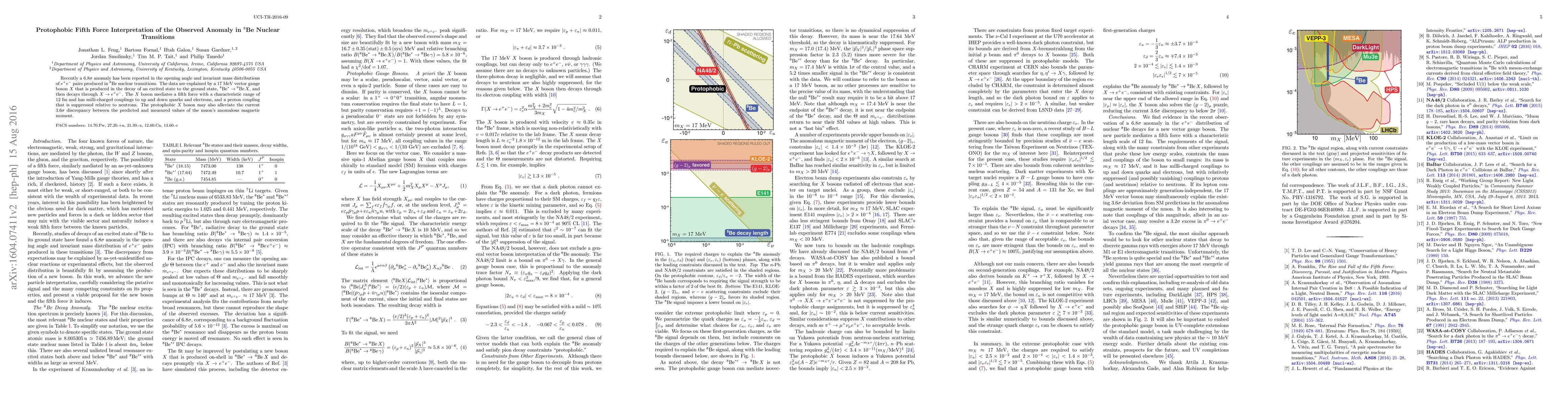 Recently a 6.8$\sigma$ anomaly has been reported in the opening angle and invariant mass distributions of $e^+ e^-$ pairs produced in $^8\text{Be}$ nuclear transitions. The data are explained by a 17 MeV vector gauge boson $X$ that is produced in the decay of an excited state to the ground state, $^8\text{Be}^* \to {}^8\text{Be} \, X$, and then decays through $X \to e^+ e^-$. The $X$ boson mediates a fifth force with a characteristic range of 12 fm and has milli-charged couplings to up and down quarks and electrons, and a proton coupling that is suppressed relative to neutrons. The protophobic $X$ boson may also alleviate the current 3.6$\sigma$ discrepancy between the predicted and measured values of the muon's anomalous magnetic moment.