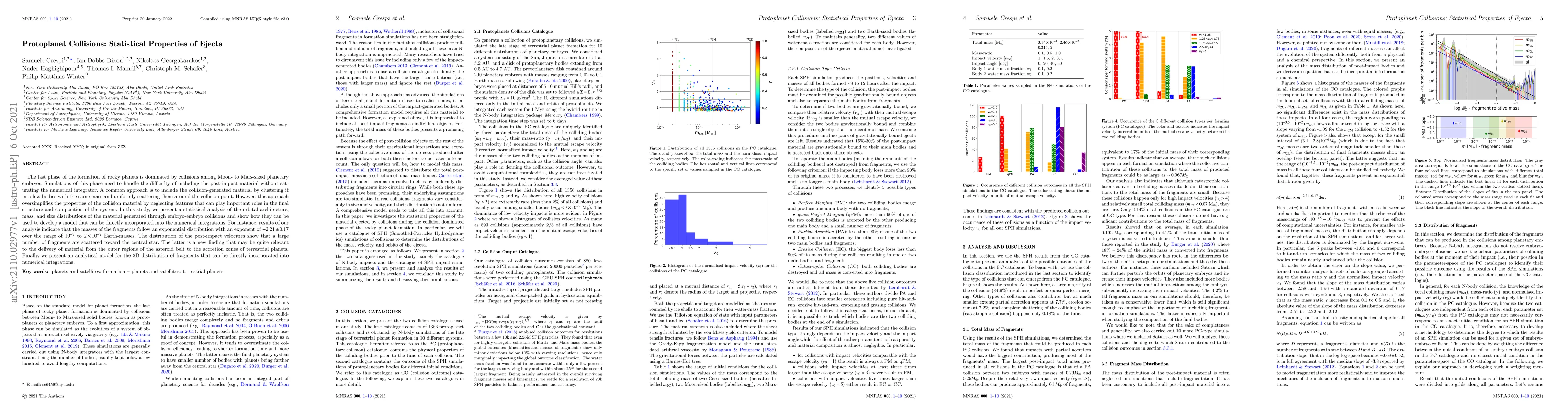 The last phase of the formation of rocky planets is dominated by collisions among Moon- to Mars-sized planetary embryos. Simulations of this phase need to handle the difficulty of including the post-impact material without saturating the numerical integrator. A common approach is to include the collision-generated material by clustering it into few bodies with the same mass and uniformly scattering them around the collision point. However, this approach oversimplifies the properties of the collision material by neglecting features that can play important roles in the final structure and composition of the system. In this study, we present a statistical analysis of the orbital architecture, mass, and size distributions of the material generated through embryo-embryo collisions and show how they can be used to develop a model that can be directly incorporated into the numerical integrations. For instance, results of our analysis indicate that the masses of the fragments follow an exponential distribution with an exponent of $-2.21\pm0.17$ over the range of $10^{-7}$ to $2\times 10^{-2}$ Earth-masses. The distribution of the post-impact velocities show that a large number of fragments are scattered toward the central star. The latter is a new finding that may be quite relevant to the delivery of material from the outer regions of the asteroid belt to the accretion zones of terrestrial planets. Finally, we present an analytical model for the 2D distribution of fragments that can be directly incorporated into numerical integrations.