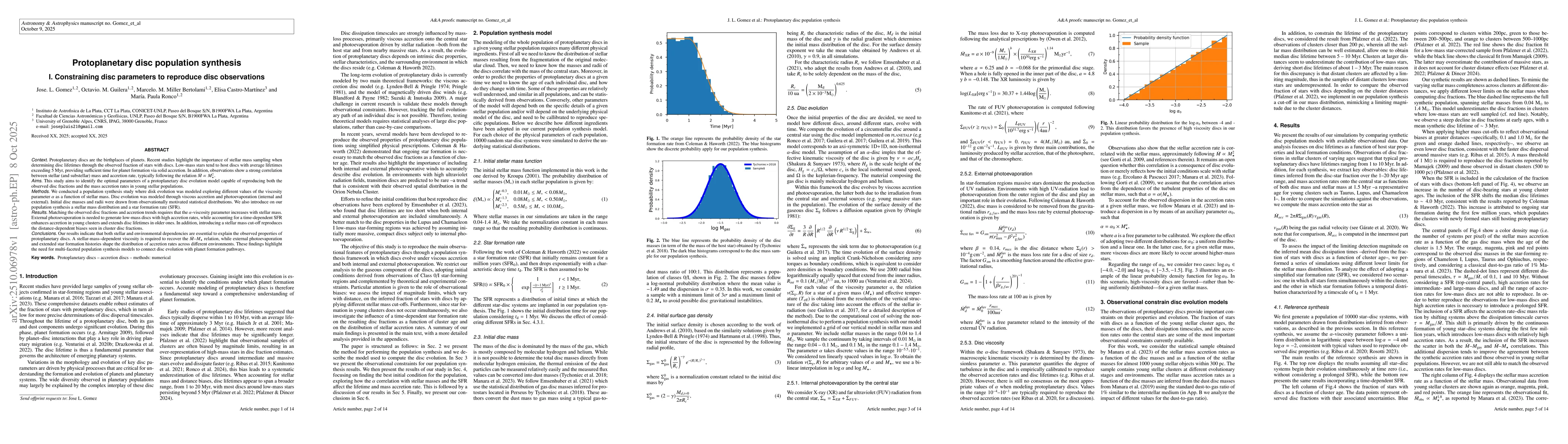The study employs a synthetic population approach to model protoplanetary disks, incorporating disk viscosity scaling with stellar mass and simulating disk evolution over time. It uses observational data from young stellar clusters to validate the models.