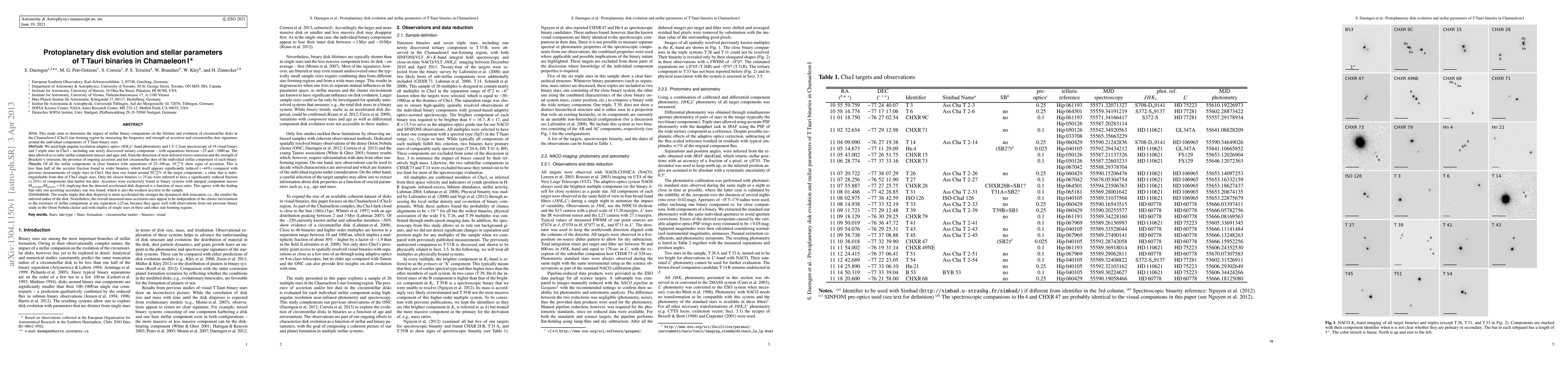 A study in the Chamaeleon I star-forming region found that 10% of T Tauri binary stars show signs of accretion, with a higher fraction in wider binaries, and that disk dispersal is more accelerated in smaller disks.