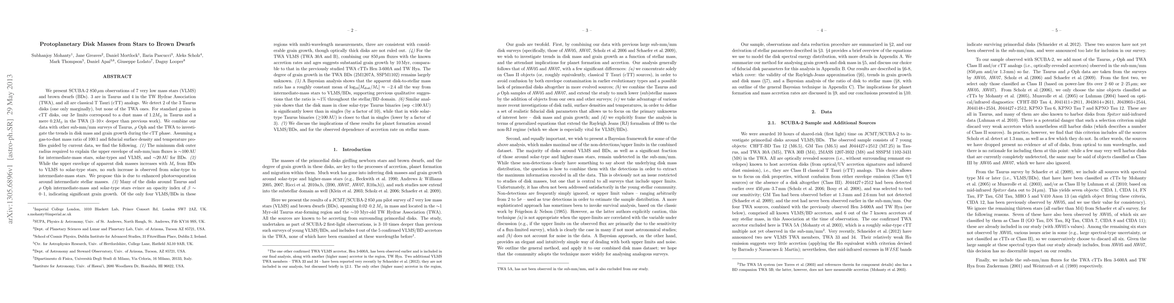 This study uses sub-millimeter observations to measure the masses of protoplanetary disks surrounding very low mass stars and brown dwarfs, finding significant variations in disk size with star mass and location.