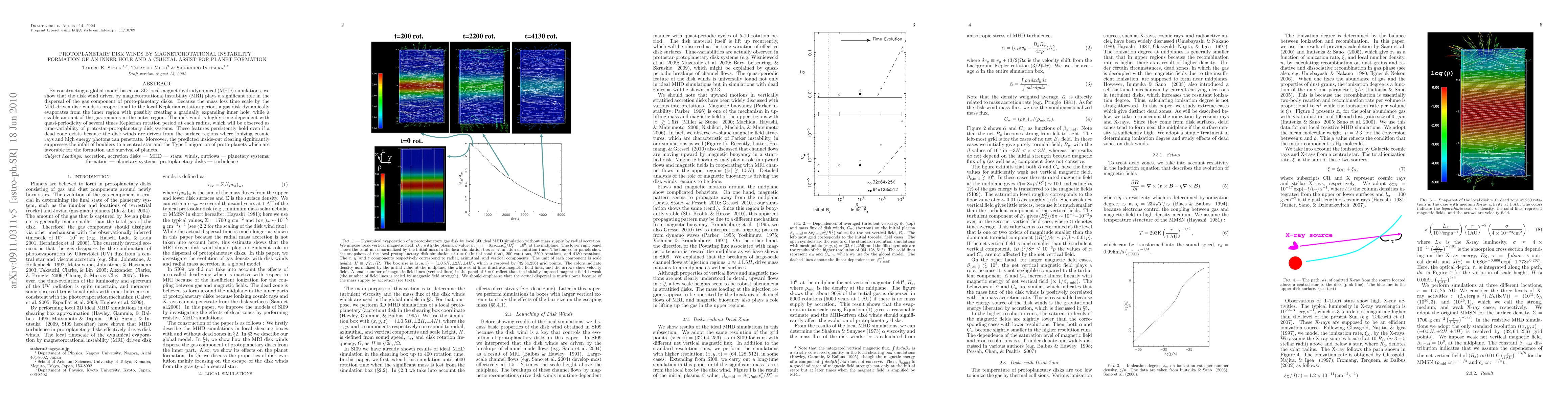 A global model simulates disk winds driven by magnetorotational instability, which disperses gas from proto-planetary disks, creating an expanding inner hole and affecting planet formation.