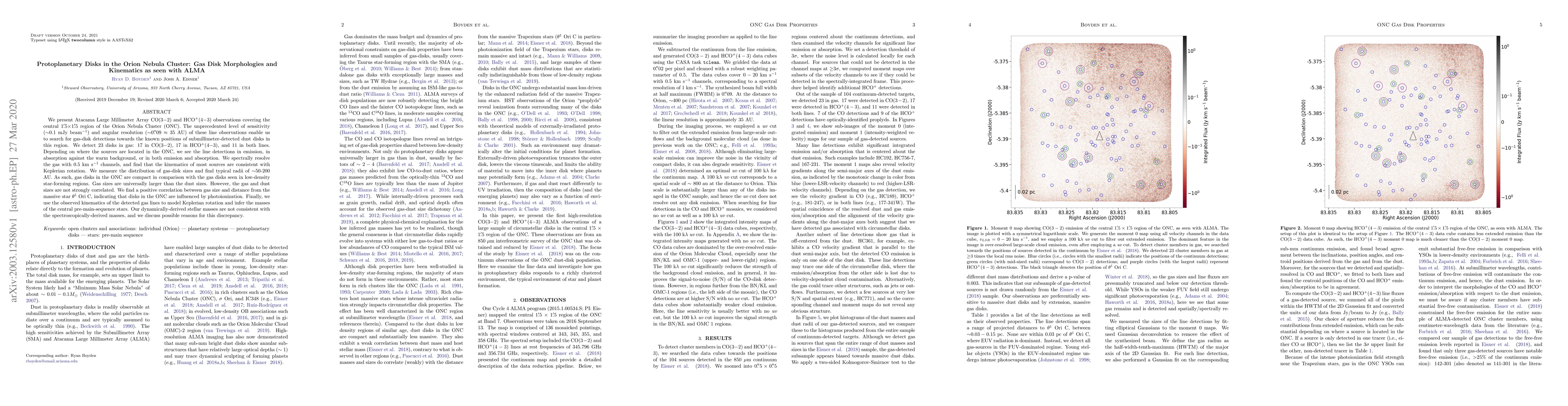 This paper uses ALMA observations to detect and analyze gas disks in the Orion Nebula Cluster, finding 23 gas disks with typical radii of 50-200 AU. The study reveals that gas disks are influenced by the nearby massive star, and their sizes correlate with distance from it, suggesting photoionization effects.