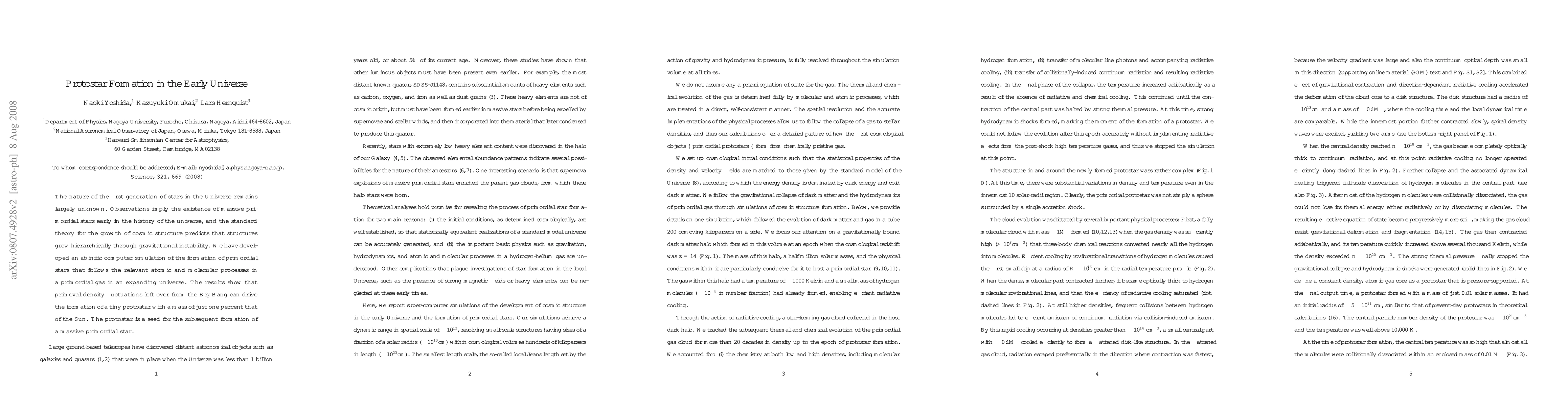This research develops a computer simulation to model the formation of the first generation of stars in the early universe, revealing that primordial density fluctuations can initiate the creation of tiny protostars, which then evolve into massive primordial stars.