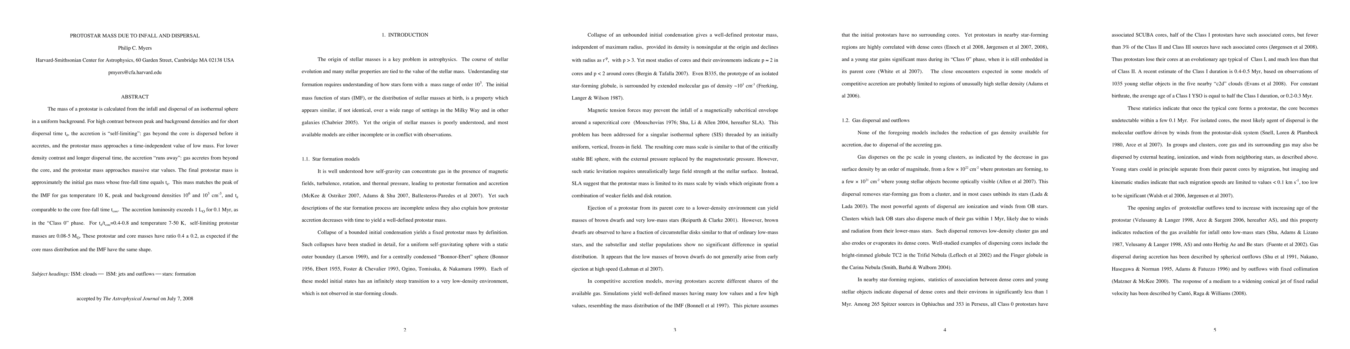 The mass of a protostar is calculated from the infall and dispersal of an isothermal sphere in a uniform background. For high contrast between peak and background densities and for short dispersal time t_d, the accretion is "self-limiting": gas beyond the core is dispersed before it accretes, and the protostar mass approaches a time-independent value of low mass. For lower density contrast and longer dispersal time, the accretion "runs away": gas accretes from beyond the core, and the protostar mass approaches massive star values. The final protostar mass is approximately the initial gas mass whose free-fall time equals t_d. This mass matches the peak of the IMF for gas temperature 10 K, peak and background densities 10^6 and 10^3 cm^-3, and for t_d comparable to the core free-fall time t_core. The accretion luminosity exceeds 1 L-Sun for 0.1 Myr, as in the "Class 0" phase. For t_d/t_core=0.4-0.8 and temperature 7-50 K, self-limiting protostar masses are 0.08-5 M-Sun. These protostar and core masses have ratio 0.4 +- 0.2, as expected if the core mass distribution and the IMF have the same shape.
