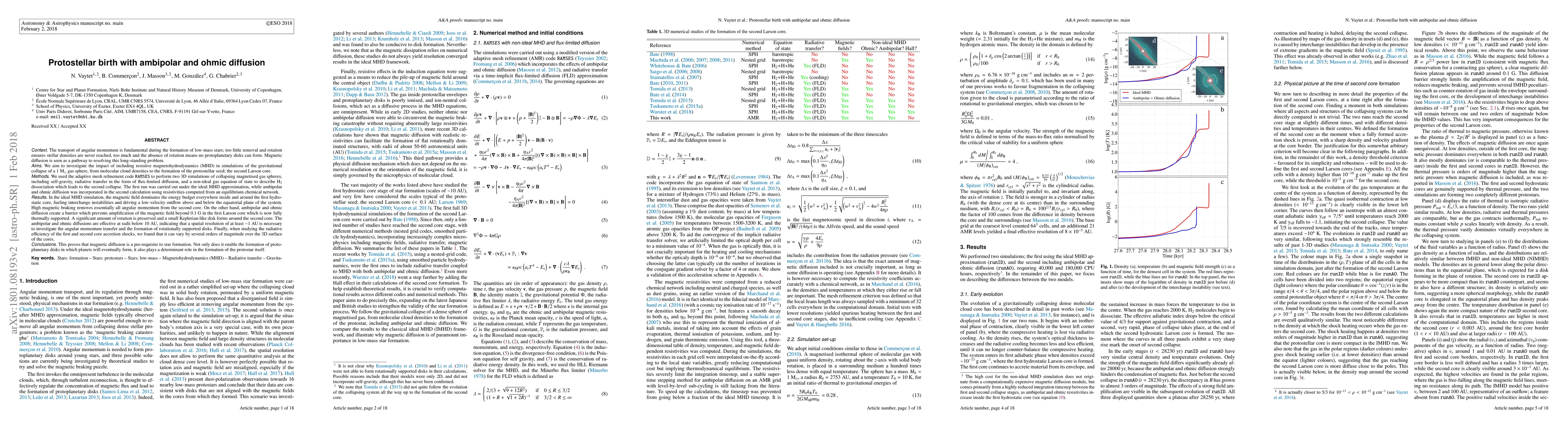 The transport of angular momentum is capital during the formation of low-mass stars; too little removal and rotation ensures stellar densities are never reached, too much and the absence of rotation means no protoplanetary disks can form. Magnetic diffusion is seen as a pathway to resolving this long-standing problem. We investigate the impact of including resistive MHD in simulations of the gravitational collapse of a 1 solar mass gas sphere, from molecular cloud densities to the formation of the protostellar seed; the second Larson core. We used the AMR code RAMSES to perform two 3D simulations of collapsing magnetised gas spheres, including self-gravity, radiative transfer, and a non-ideal gas equation of state to describe H2 dissociation which leads to the second collapse. The first run was carried out under the ideal MHD approximation, while ambipolar and ohmic diffusion was incorporated in the second calculation. In the ideal MHD simulation, the magnetic field dominates the energy budget everywhere inside and around the first core, fueling interchange instabilities and driving a low-velocity outflow. High magnetic braking removes essentially all angular momentum from the second core. On the other hand, ambipolar and ohmic diffusion create a barrier which prevents amplification of the magnetic field beyond 0.1 G in the first Larson core which is now fully thermally supported. A significant amount of rotation is preserved and a small Keplerian-like disk forms around the second core. When studying the radiative efficiency of the first and second core accretion shocks, we found that it can vary by several orders of magnitude over the 3D surface of the cores. Magnetic diffusion is a pre-requisite to star-formation; it enables the formation of protoplanetary disks in which planets will eventually form, and also plays a determinant role in the formation of the protostar itself.