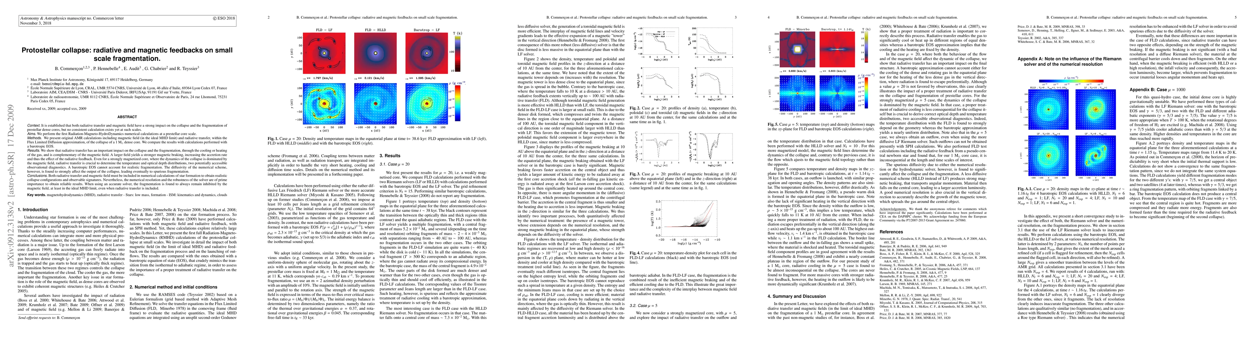 This paper investigates the impact of radiative transfer and magnetic fields on the collapse and fragmentation of prestellar dense cores using adaptive mesh refinement calculations. It finds that both processes are crucial for determining realistic collapse dynamics and observable signatures, though numerical resolution and solver robustness are essential to avoid spurious fragmentation.