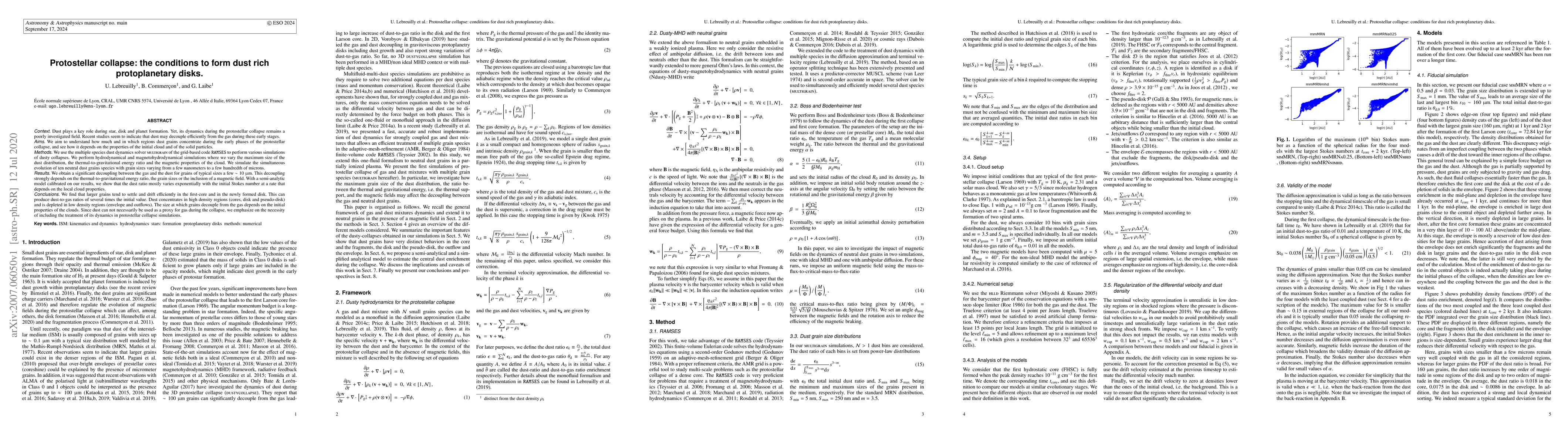 This research investigates the dynamics of dust during protostellar collapse, finding that larger dust grains (a few microns) decouple from the gas, concentrating in high-density regions and forming dust-rich protoplanetary disks. The degree of decoupling depends on the cloud's thermal-to-gravitational energy ratio, grain size, and magnetic properties.