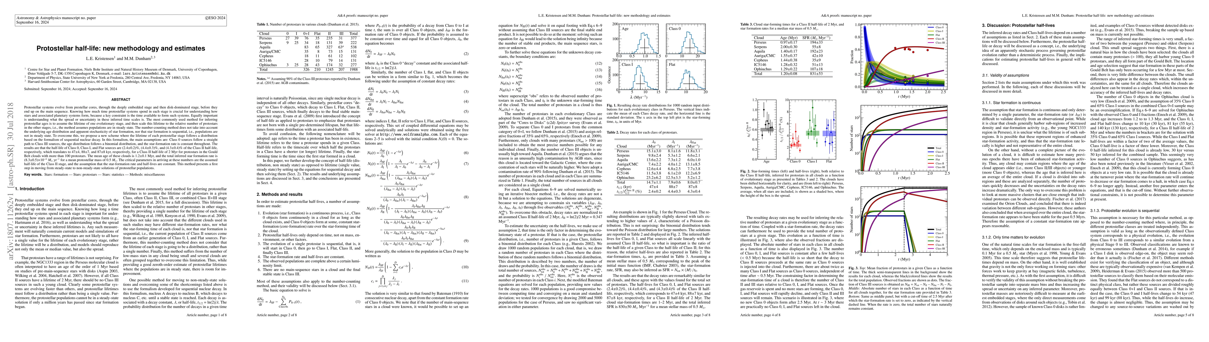 Researchers proposed a new method to estimate protostellar half-life based on sequential nuclear decay, revealing average ages of 47k-87k years for different stages of star formation.