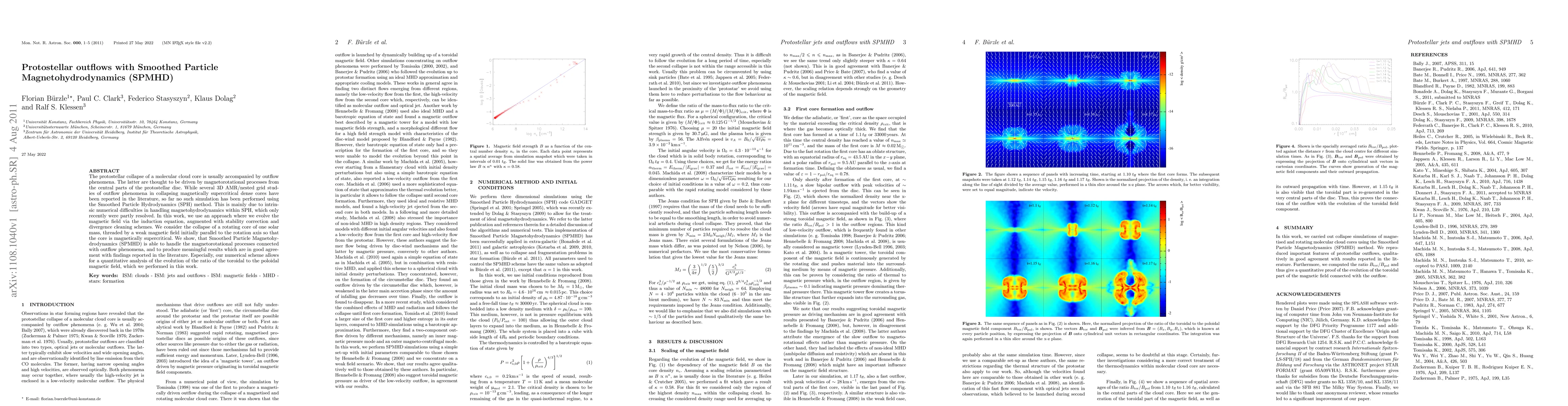 This paper investigates protostellar outflows using Smoothed Particle Magnetohydrodynamics (SPMHD), demonstrating its capability to handle magnetorotational processes. The study finds that SPMHD can produce results consistent with previous 3D AMR studies, particularly in analyzing the evolution of the magnetic field ratio in collapsing magnetically supercritical cores.