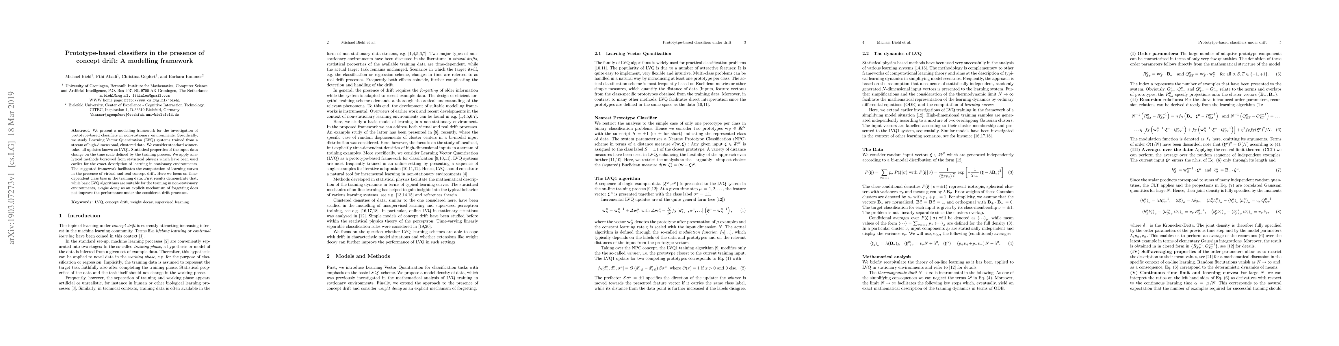 We present a modelling framework for the investigation of prototype-based classifiers in non-stationary environments. Specifically, we study Learning Vector Quantization (LVQ) systems trained from a stream of high-dimensional, clustered data.We consider standard winner-takes-all updates known as LVQ1. Statistical properties of the input data change on the time scale defined by the training process. We apply analytical methods borrowed from statistical physics which have been used earlier for the exact description of learning in stationary environments. The suggested framework facilitates the computation of learning curves in the presence of virtual and real concept drift. Here we focus on timedependent class bias in the training data. First results demonstrate that, while basic LVQ algorithms are suitable for the training in non-stationary environments, weight decay as an explicit mechanism of forgetting does not improve the performance under the considered drift processes.
