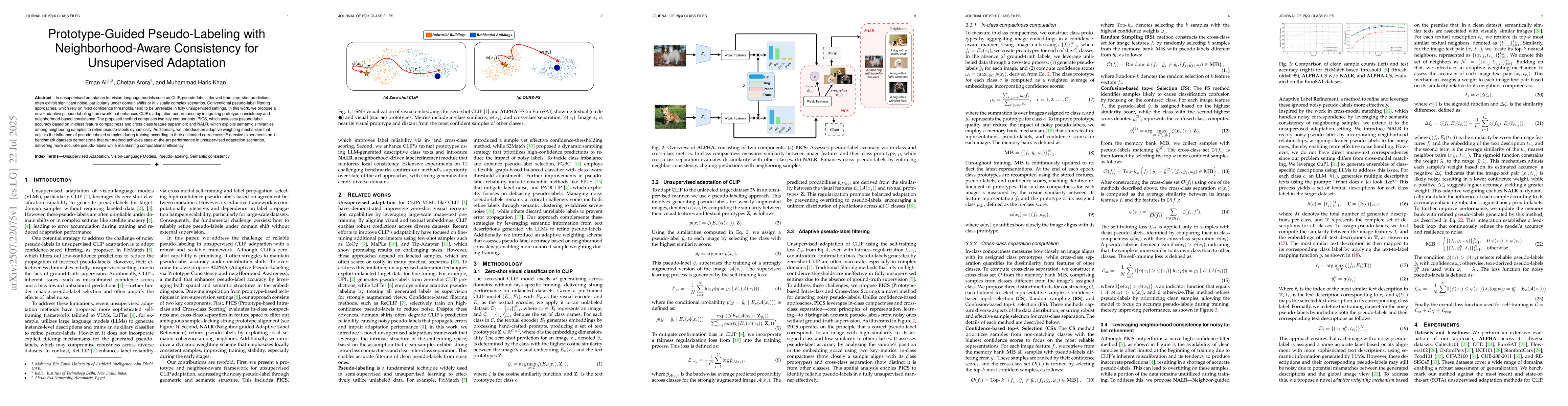 In unsupervised adaptation for vision-language models such as CLIP, pseudo-labels derived from zero-shot predictions often exhibit significant noise, particularly under domain shifts or in visually complex scenarios. Conventional pseudo-label filtering approaches, which rely on fixed confidence thresholds, tend to be unreliable in fully unsupervised settings. In this work, we propose a novel adaptive pseudo-labeling framework that enhances CLIP's adaptation performance by integrating prototype consistency and neighborhood-based consistency. The proposed method comprises two key components: PICS, which assesses pseudo-label accuracy based on in-class feature compactness and cross-class feature separation; and NALR, which exploits semantic similarities among neighboring samples to refine pseudo-labels dynamically. Additionally, we introduce an adaptive weighting mechanism that adjusts the influence of pseudo-labeled samples during training according to their estimated correctness. Extensive experiments on 11 benchmark datasets demonstrate that our method achieves state-of-the-art performance in unsupervised adaptation scenarios, delivering more accurate pseudo-labels while maintaining computational efficiency.