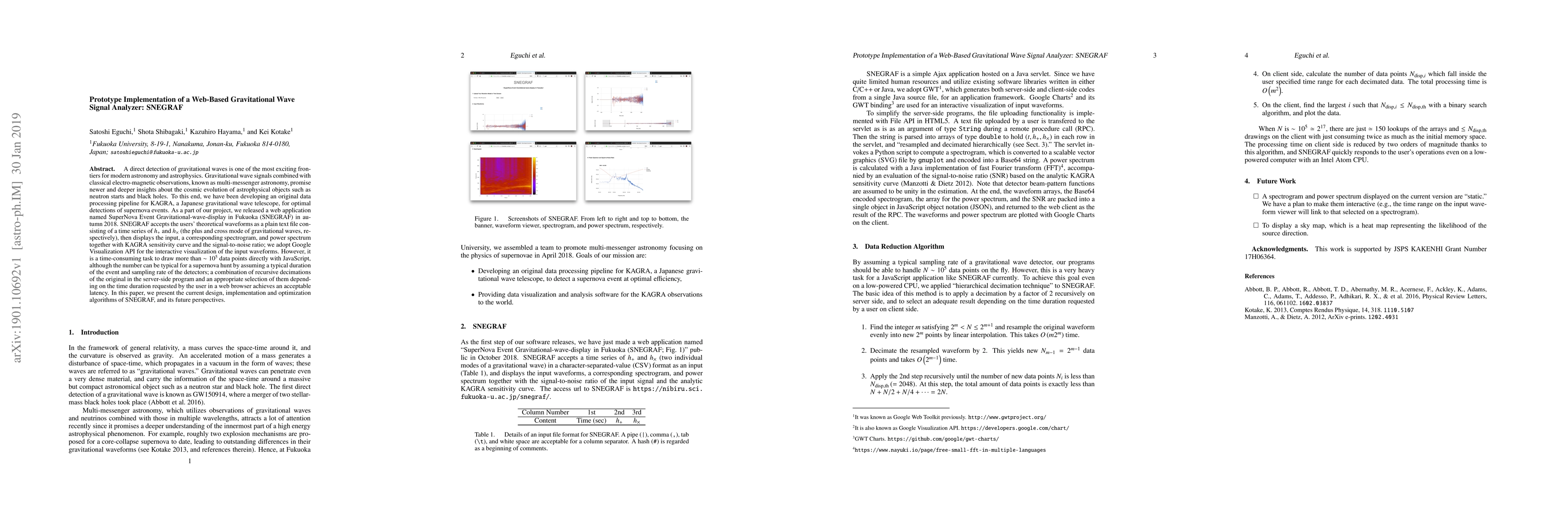 A direct detection of gravitational waves is one of the most exciting frontiers for modern astronomy and astrophysics. Gravitational wave signals combined with classical electro-magnetic observations, known as multi-messenger astronomy, promise newer and deeper insights about the cosmic evolution of astrophysical objects such as neutron starts and black holes. To this end, we have been developing an original data processing pipeline for KAGRA, a Japanese gravitational wave telescope, for optimal detections of supernova events. As a part of our project, we released a web application named SuperNova Event Gravitational-wave-display in Fukuoka (SNEGRAF) in autumn 2018. SNEGRAF accepts the users' theoretical waveforms as a plain text file consisting of a time series of $h_{+}$ and $h_{\times}$ (the plus and cross mode of gravitational waves, respectively), then displays the input, a corresponding spectrogram, and power spectrum together with KAGRA sensitivity curve and the signal-to-noise ratio; we adopt Google Visualization API for the interactive visualization of the input waveforms. However, it is a time-consuming task to draw more than $\sim 10^{5}$ data points directly with JavaScript, although the number can be typical for a supernova hunt by assuming a typical duration of the event and sampling rate of the detectors; a combination of recursive decimations of the original in the server-side program and an appropriate selection of them depending on the time duration requested by the user in a web browser achieves an acceptable latency. In this paper, we present the current design, implementation and optimization algorithms of SNEGRAF, and its future perspectives.
