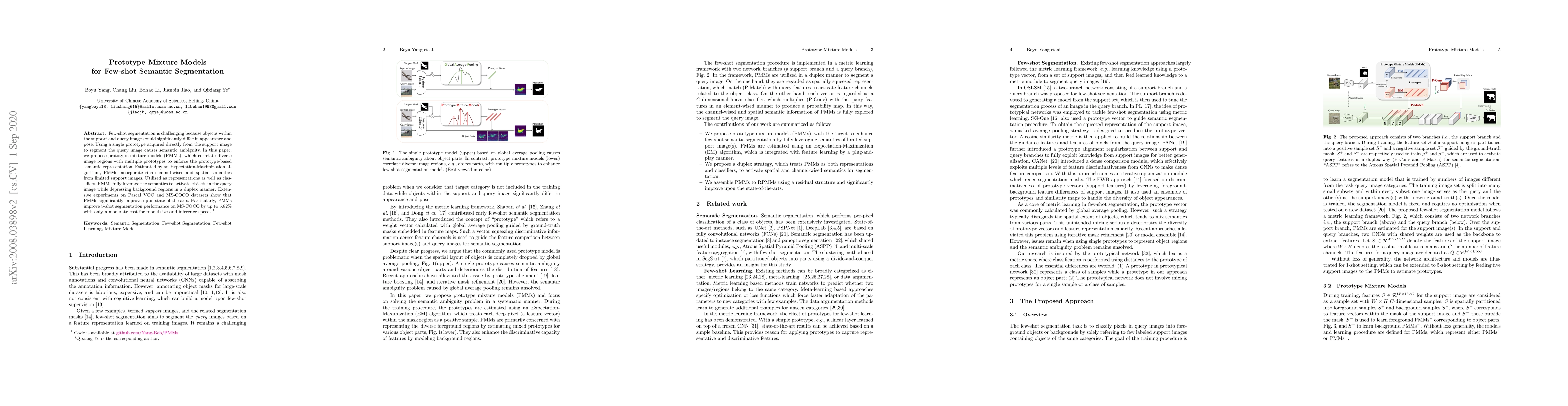 This paper proposes prototype mixture models (PMMs) to tackle the challenges of few-shot semantic segmentation, where objects differ in appearance and pose. PMMs correlate diverse image regions with multiple prototypes to enhance semantic representation, significantly improving segmentation performance on datasets like Pascal VOC and MS-COCO, with notable gains in 5-shot segmentation on MS-COCO.