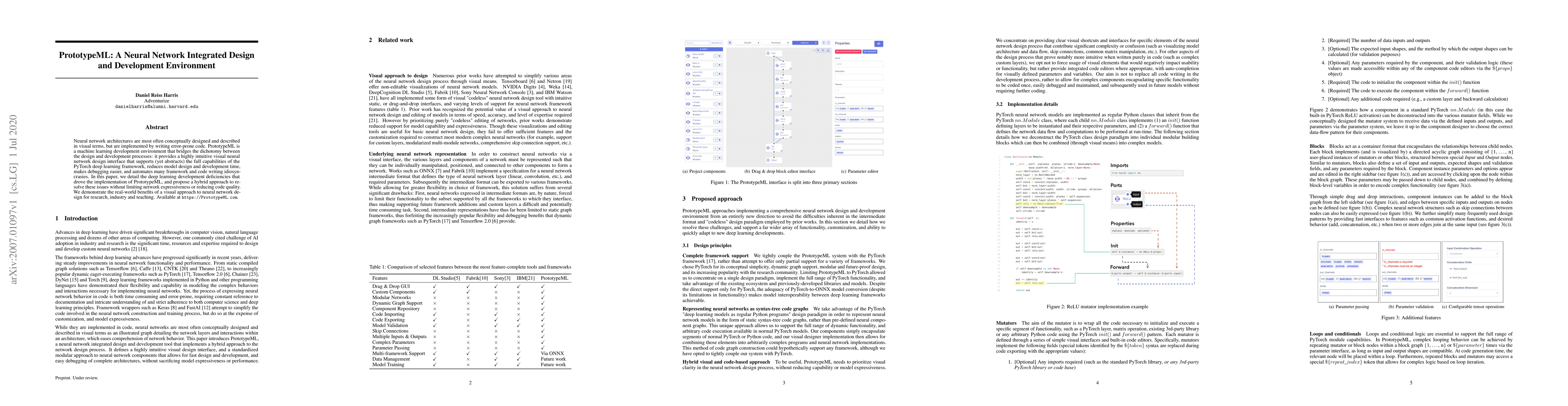 PrototypeML bridges the gap between neural network design and development with a visual interface that reduces model creation time and improves debugging, allowing researchers to focus on complex AI tasks.