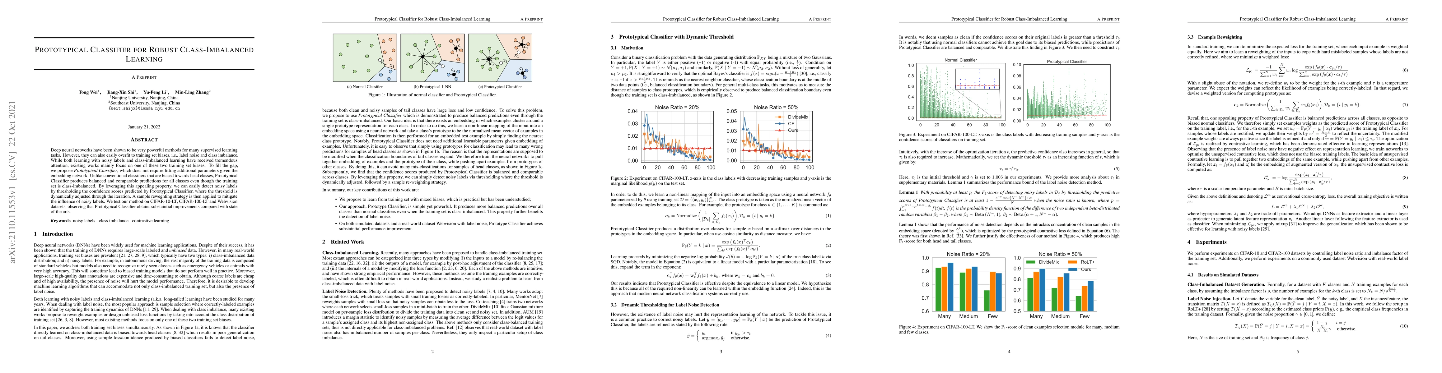 This paper proposes a Prototypical Classifier to address class-imbalanced learning and label noise in deep neural networks. Unlike traditional classifiers, it provides balanced predictions without additional parameters, enabling detection of noisy labels and subsequent mitigation through sample reweighting.