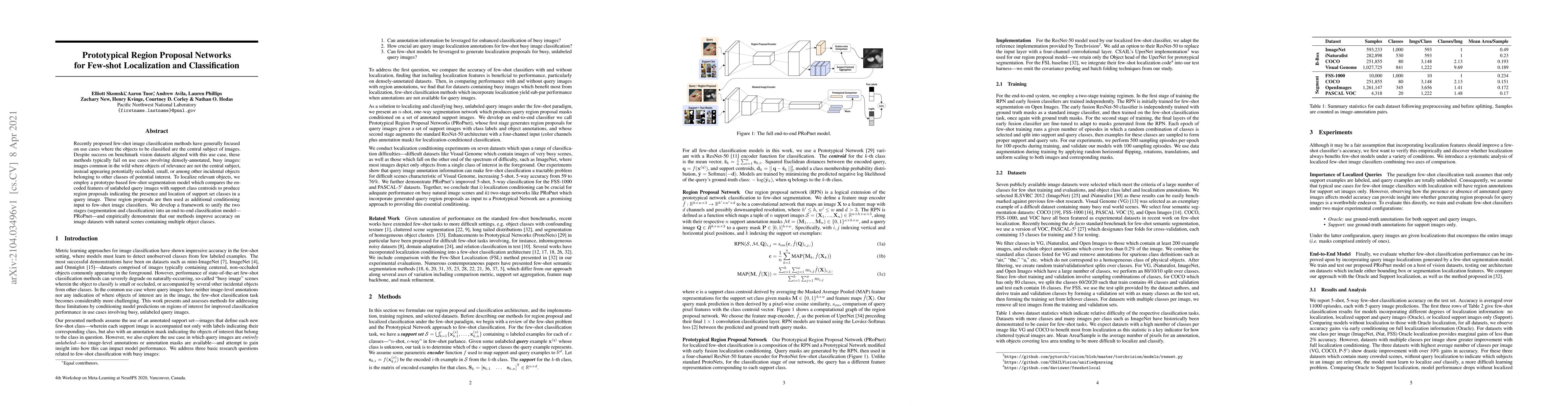 This paper proposes a new method called PRoPnet that uses few-shot segmentation to identify relevant objects in images, improving accuracy on datasets with natural scenes containing multiple object classes.