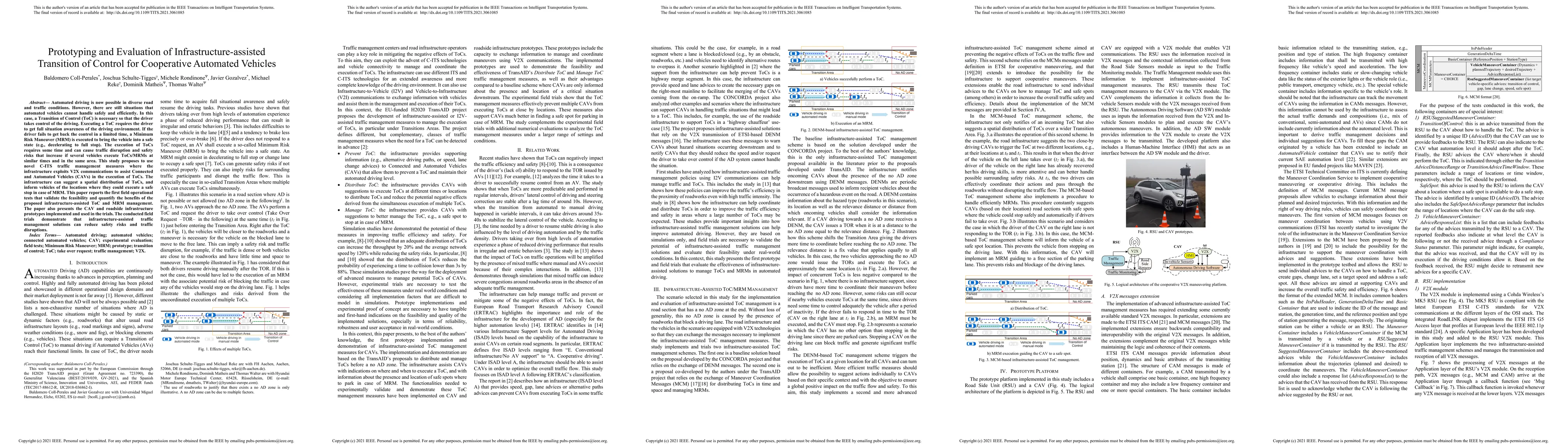 This study explores an infrastructure-assisted Transition of Control (ToC) for cooperative automated vehicles, proposing novel C-ITS measures to enhance ToC execution. Field operational tests validate the feasibility and benefits of using infrastructure to reduce safety risks and traffic disruptions during ToCs and Minimum Risk Maneuvers (MRMs).
