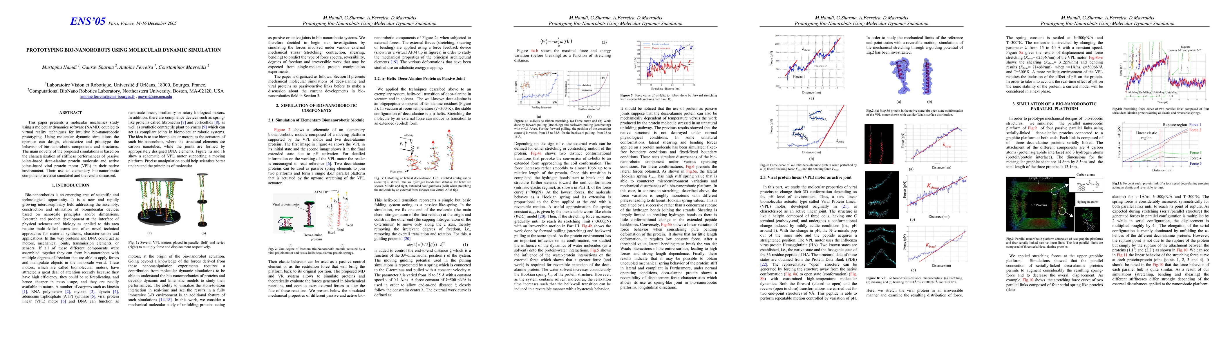 This paper employs molecular dynamics simulation and virtual reality to prototype Bio-NanoRobots, focusing on the stiffness performance of deca-alanine protein and viral protein motor (VPM) joints. The study discusses the potential of these components in Bio-NanoRobotic applications through simulated 3-D environments.