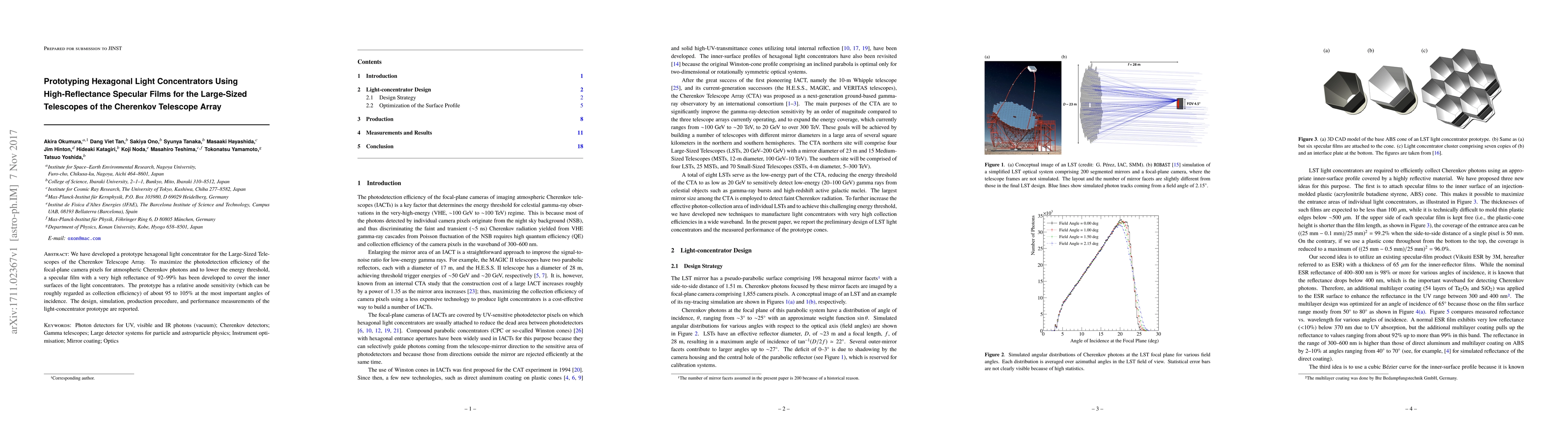 This paper details the development of a prototype hexagonal light concentrator for the Cherenkov Telescope Array, utilizing high-reflectance specular films to enhance photodetection efficiency and reduce energy thresholds. The prototype demonstrates a collection efficiency of 95-105% at critical angles, showcasing its potential for improved telescope performance.