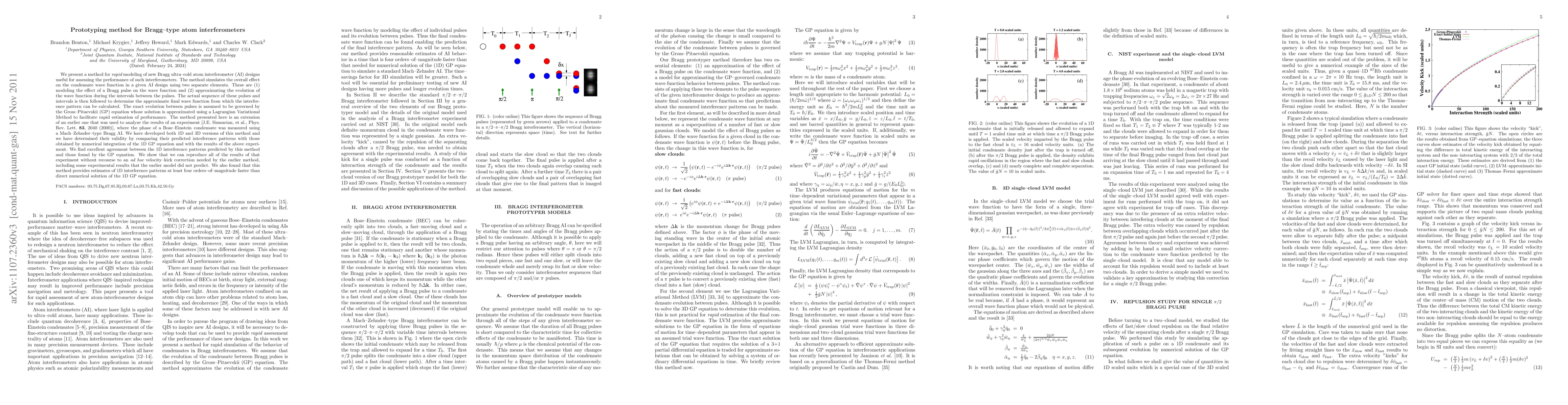 We present a method for rapid prototyping of new Bragg ultra-cold atom interferometer (AI) designs useful for assessing the performance of such interferometers. The method simulates the overall effect on the condensate wave function in a given AI design using two separate elements. These are (1) modeling the effect of a Bragg pulse on the wave function and (2) approximating the evolution of the wave function during the intervals between the pulses. The actual sequence of these pulses and intervals is then followed to determine the approximate final wave function from which the interference pattern can be calculated. The exact evolution between pulses is assumed to be governed by the Gross-Pitaevskii (GP) equation whose solution is approximated using a Lagrangian Variational Method to facilitate rapid prototyping. The method presented here is an extension of an earlier one that was used to analyze the results of an experiment [J.E. Simsarian, et al., Phys. Rev. Lett. 83, 2040 (2000)], where the phase of a Bose-Einstein condensate was measured using a Mach- Zehnder-type Bragg AI. We have developed both 1D and 3D versions of this method and we have determined their validity by comparing their predicted interference patterns with those obtained by numerical integration of the 1D GP equation and with the results of the above experiment. We find excellent agreement between the 1D interference patterns predicted by this method and those found by the GP equation. We show that we can reproduce all of the results of that experiment without recourse to an ad hoc velocity-kick correction needed by the earlier method, including some experimental results that the earlier model did not predict. We also found that this method provides estimates of 1D interference patterns at least four orders-of-magnitude faster than direct numerical solution of the 1D GP equation.