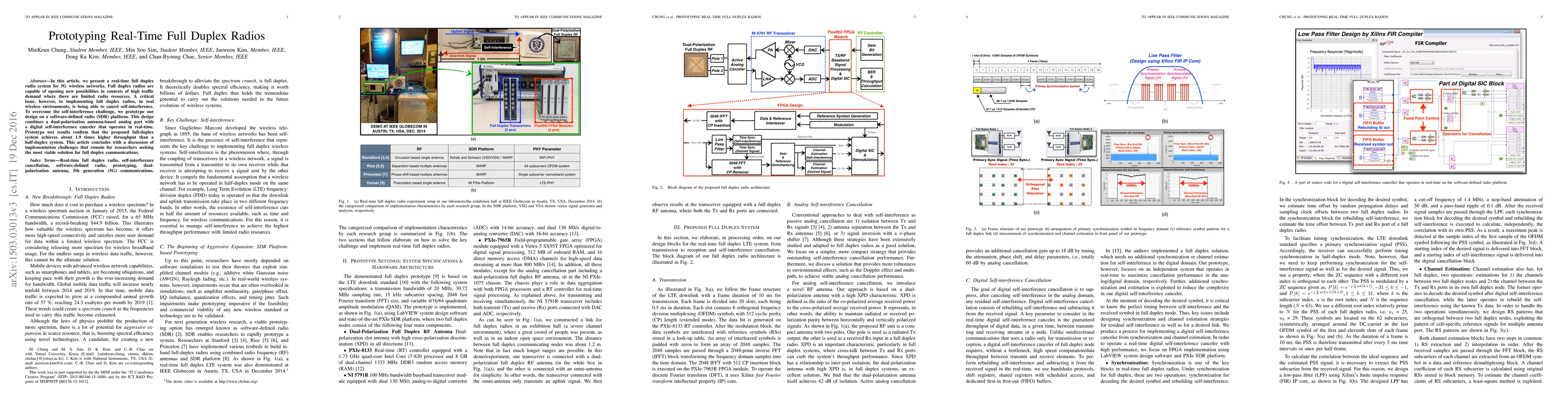 This paper introduces a real-time full duplex radio system for 5G networks, leveraging a software-defined radio to address self-interference challenges. The prototype achieves 1.9 times higher throughput compared to half-duplex systems, though it discusses ongoing implementation challenges.