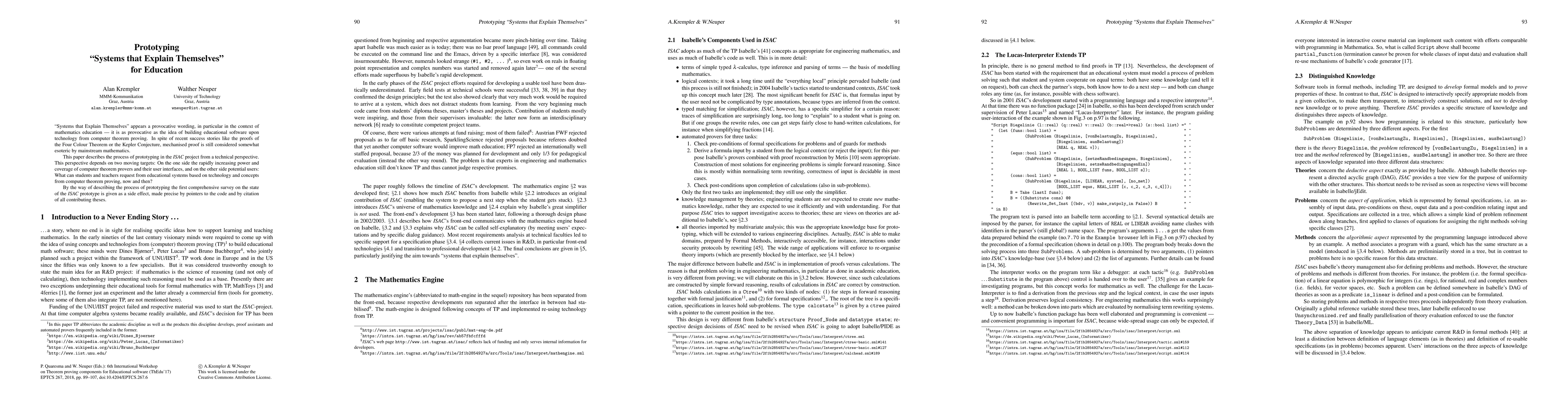 This paper details the prototyping process of "Systems that Explain Themselves" in the ISAC project, focusing on leveraging computer theorem proving technology for mathematics education. It surveys the evolving capabilities of theorem provers and explores the educational needs of students and teachers to develop effective educational software.