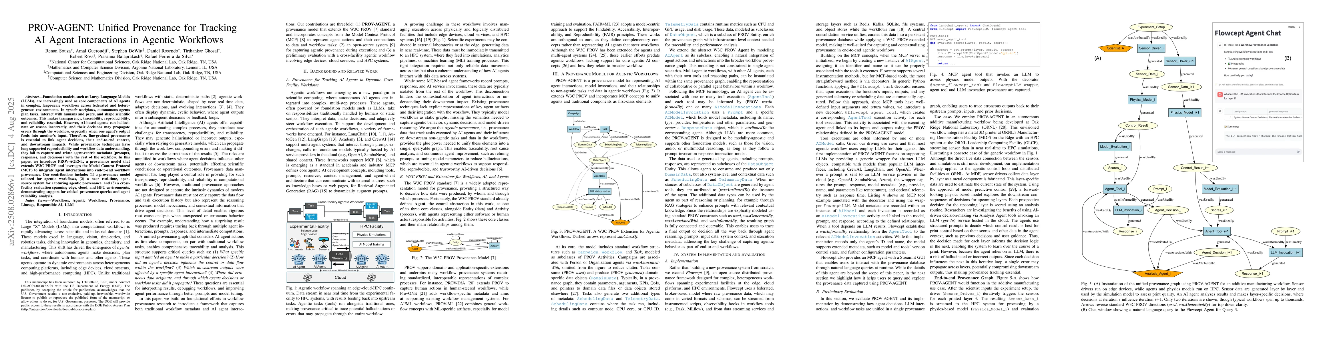 Foundation models, such as Large Language Models (LLMs), are increasingly used as core components of AI agents in complex, large-scale workflows across federated and heterogeneous environments. In agentic workflows, autonomous agents plan tasks, interact with humans and peers, and shape scientific outcomes. This makes transparency, traceability, reproducibility, and reliability essential. However, AI-based agents can hallucinate or reason incorrectly, and their decisions may propagate errors through the workflow, especially when one agent's output feeds into another's input. Therefore, fine-grained provenance is essential to link agent decisions, their end-to-end context, and downstream impacts. While provenance techniques have long supported reproducibility and workflow data understanding, they fail to capture and relate agent-centric metadata (prompts, responses, and decisions) with the rest of the workflow. In this paper, we introduce PROV-AGENT, a provenance model that extends W3C PROV and leverages the Model Context Protocol (MCP) to integrate agent interactions into end-to-end workflow provenance. Our contributions include: (1) a provenance model tailored for agentic workflows, (2) a near real-time, open-source system for capturing agentic provenance, and (3) a cross-facility evaluation spanning edge, cloud, and HPC environments, demonstrating support for critical provenance queries and agent reliability analysis.