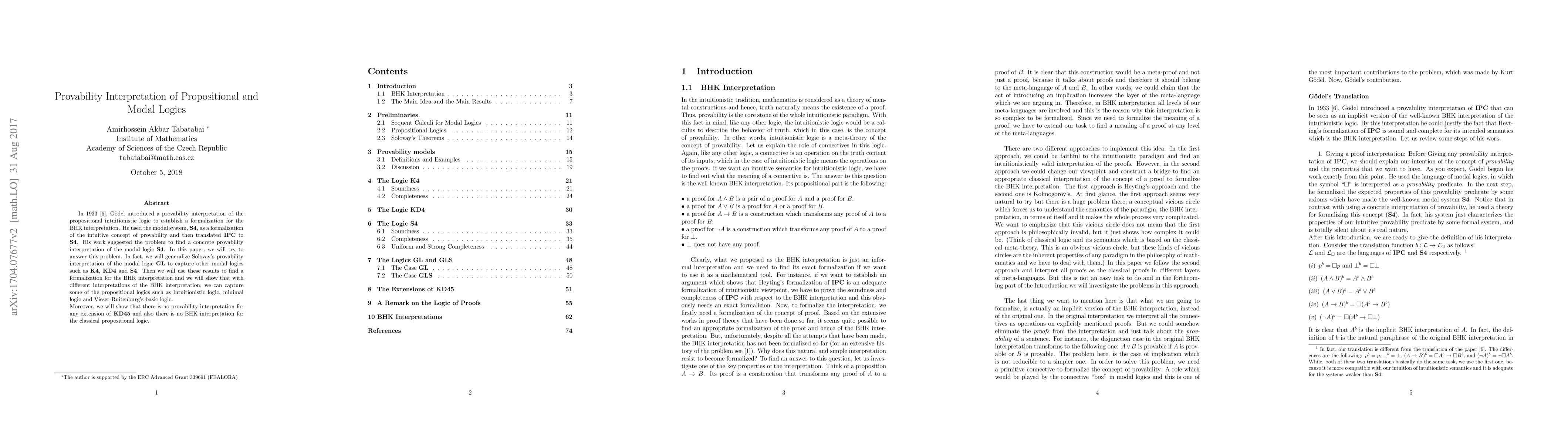 In 1933, G\"odel introduced a provability interpretation of the propositional intuitionistic logic to establish a formalization for the BHK interpretation. He used the modal system, $\mathbf{S4}$, as a formalization of the intuitive concept of provability and then translated $\mathbf{IPC}$ to $\mathbf{S4}$. His work suggested the problem to find a concrete provability interpretation of the modal logic $\mathbf{S4}$. In this paper, we will try to answer this problem. In fact, we will generalize Solovay's provability interpretation of the modal logic $\mathbf{GL}$ to capture other modal logics such as $\mathbf{K4}$, $\mathbf{KD4}$ and $\mathbf{S4}$. Then we will use these results to find a formalization for the BHK interpretation and we will show that with different interpretations of the BHK interpretation, we can capture some of the propositional logics such as Intuitionistic logic, minimal logic and Visser-Ruitenburg's basic logic. Moreover, we will show that there is no provability interpretation for any extension of $\mathbf{KD45}$ and also there is no BHK interpretation for the classical propositional logic.